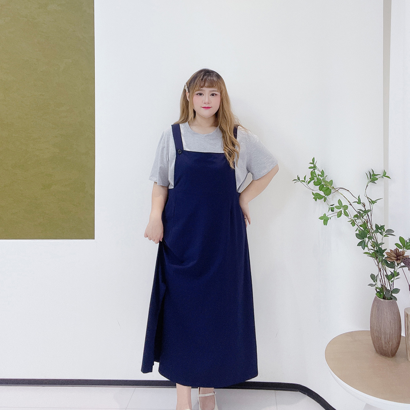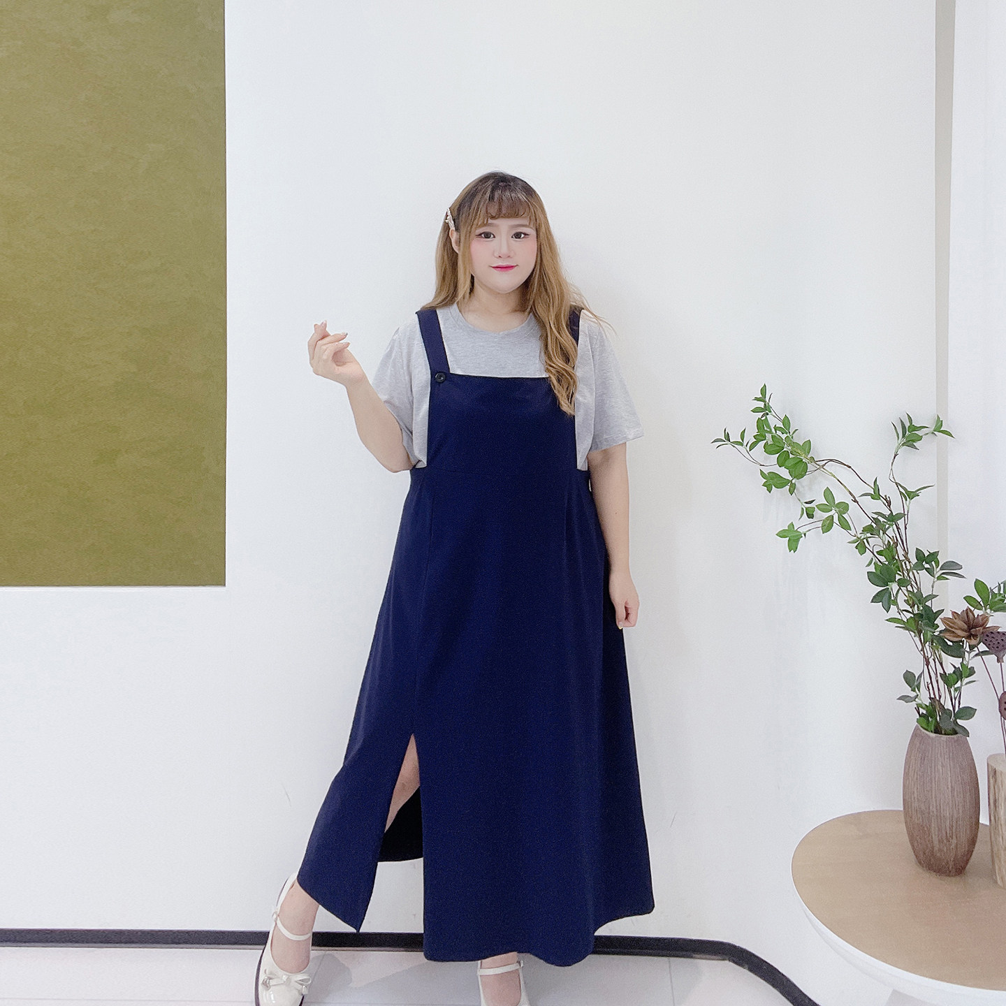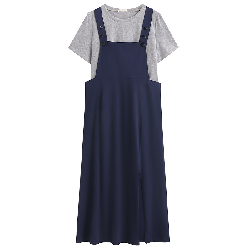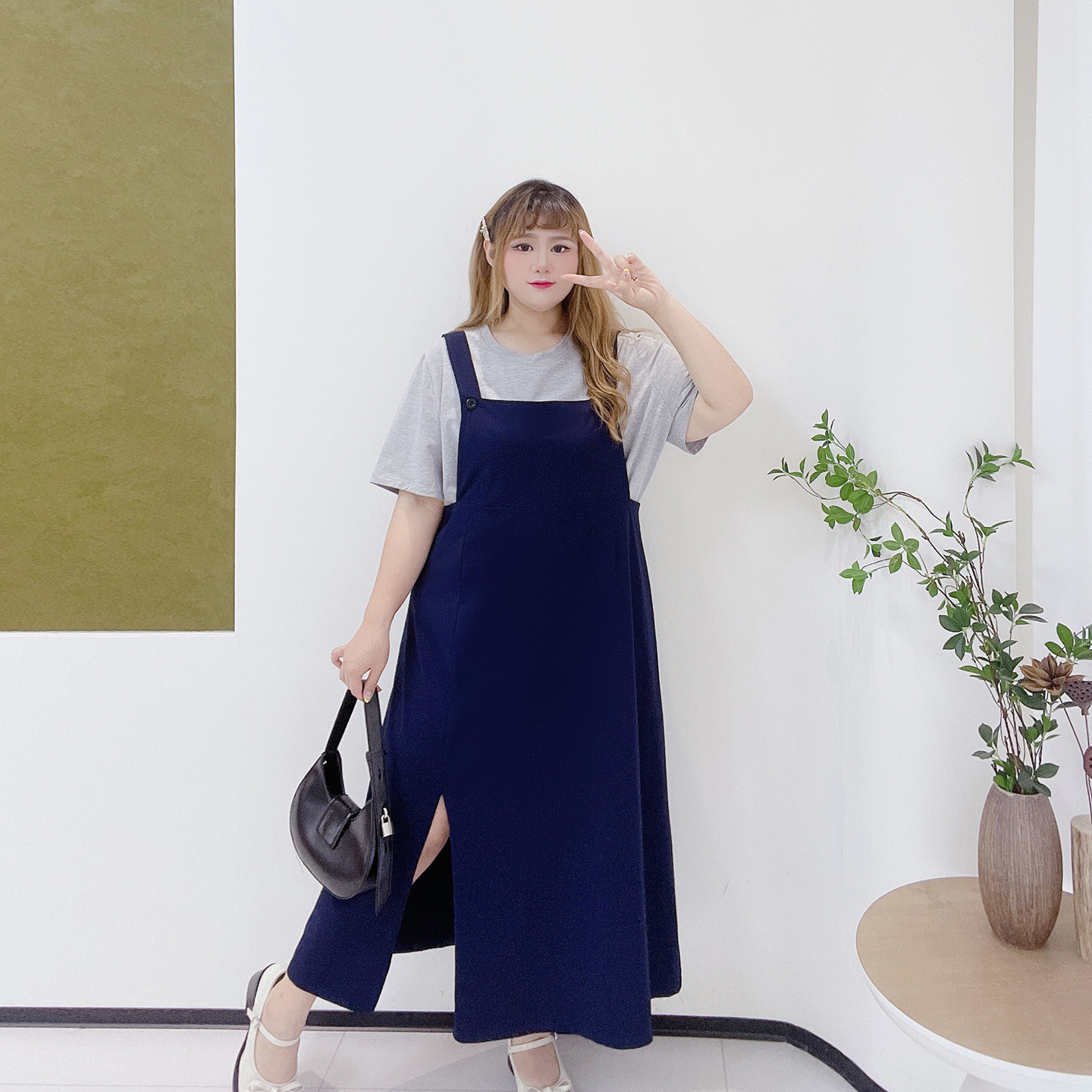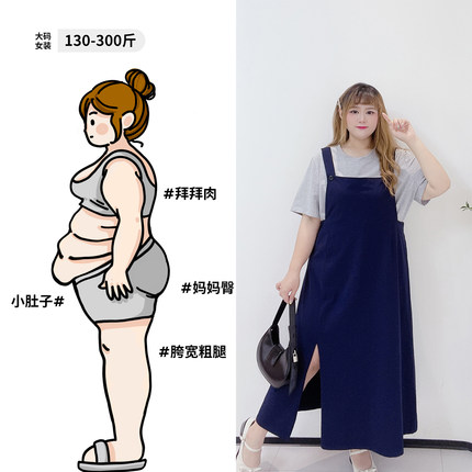 300斤学院风显瘦套装胖莹莹大码女装夏简约休闲T恤开叉背带连衣裙