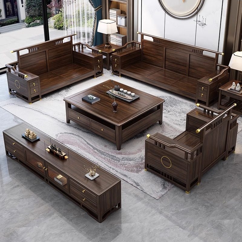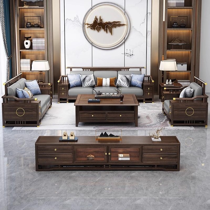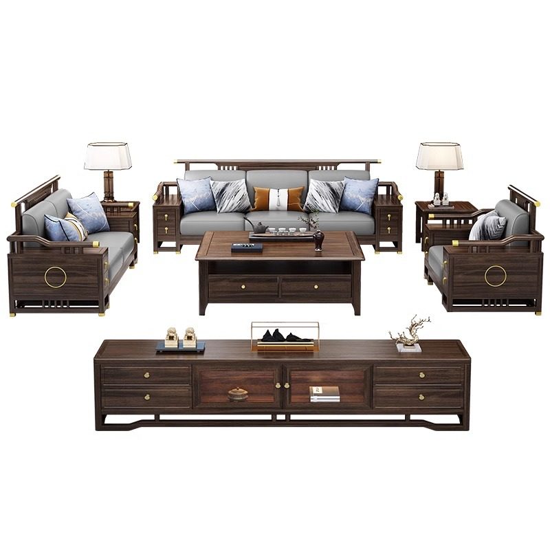 新中式乌金木实木沙发组合简约现代高档别墅大小户型轻奢客厅家具
