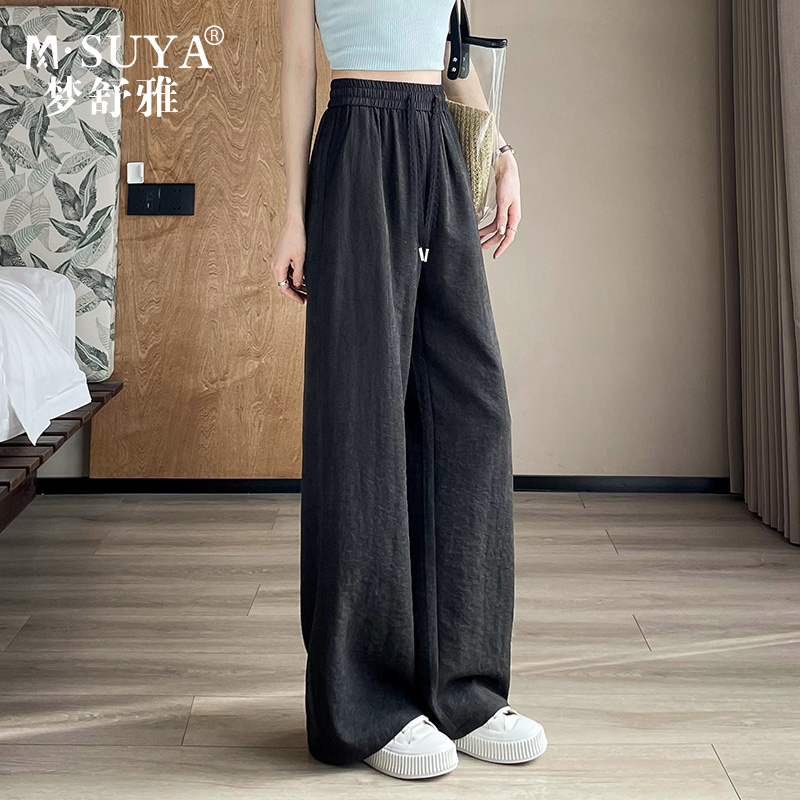 梦舒雅窄版阔腿裤女2025春新款高腰宽松显瘦垂感百搭直筒休闲裤子