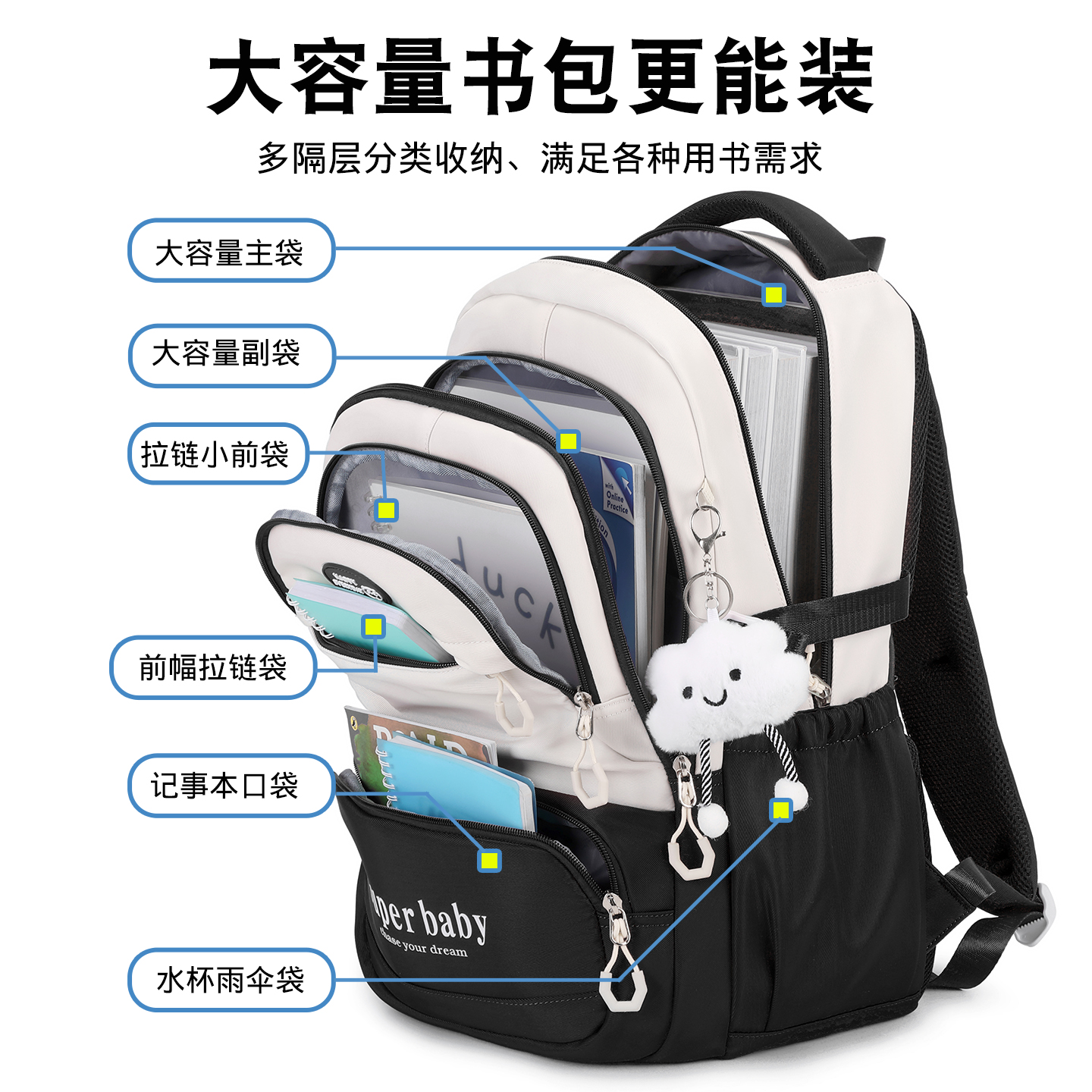 中学生书包初中女生小学生三到六年级女孩护脊减负高中男生双肩包