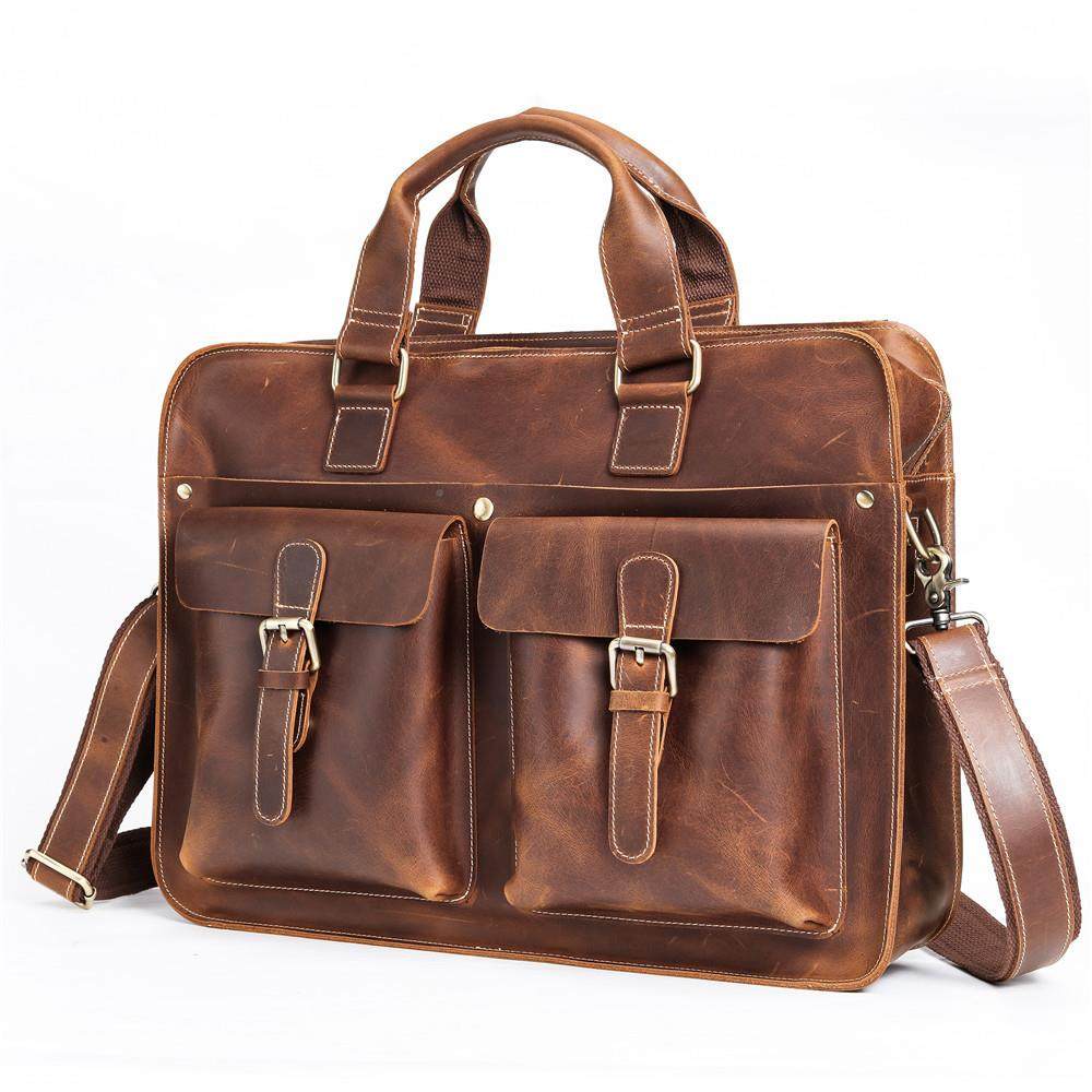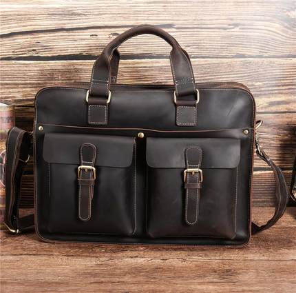 日本SF疯牛皮士男商务公文包16寸手提旅电脑男包行包马横款斜挎包