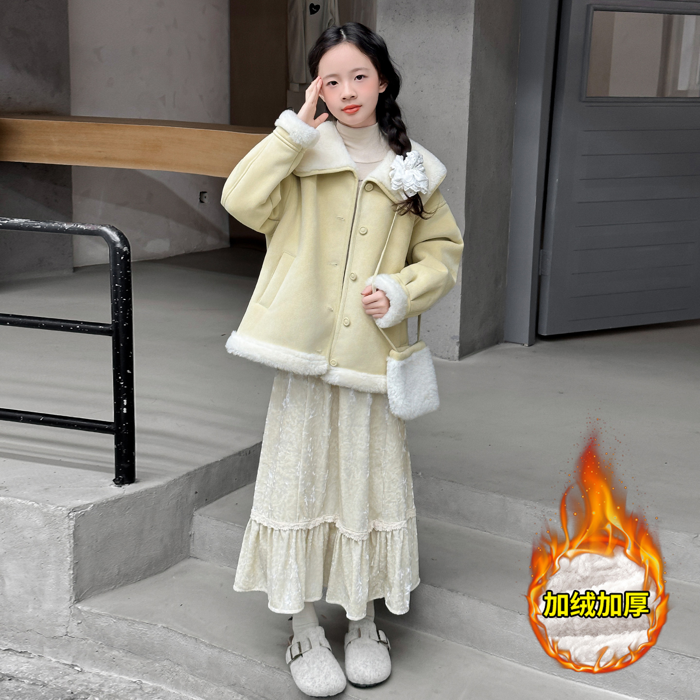 儿童装女童冬装一体加绒外套加厚2025新款中大童女孩秋冬款初中生