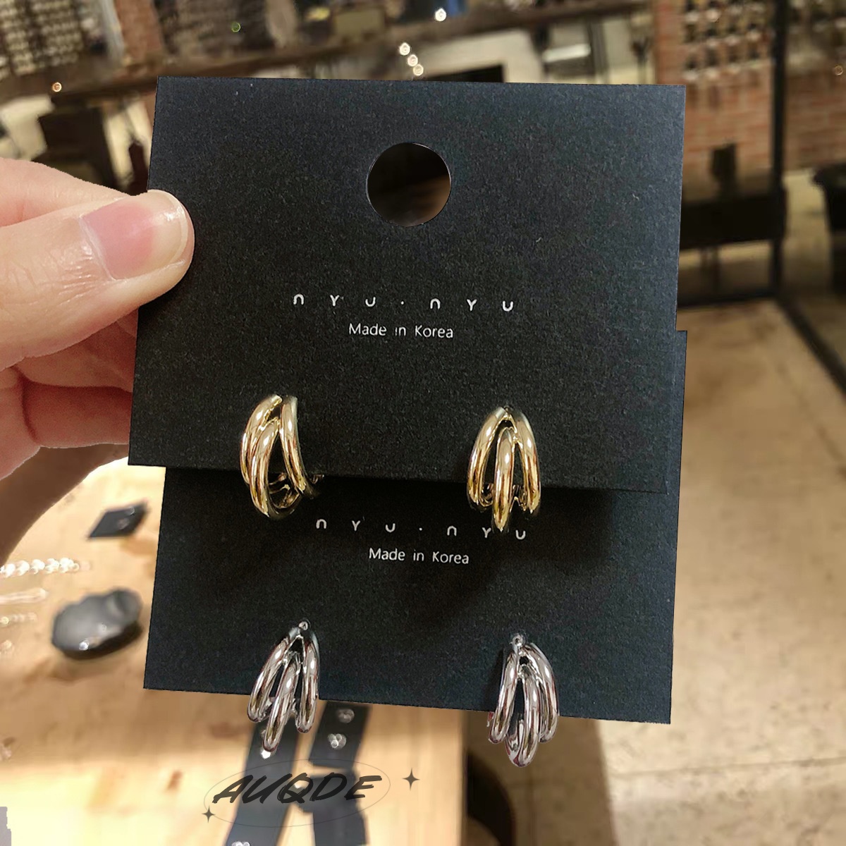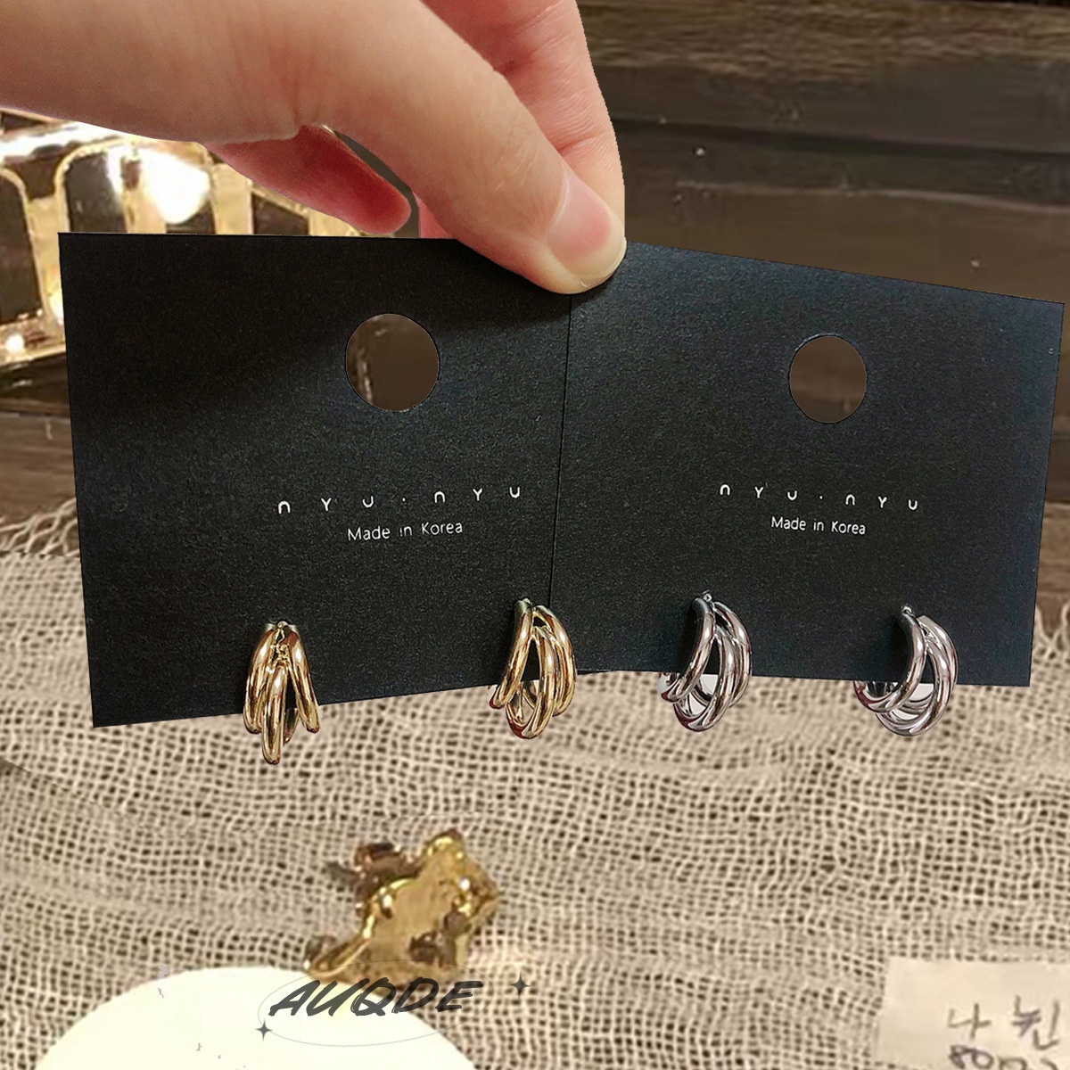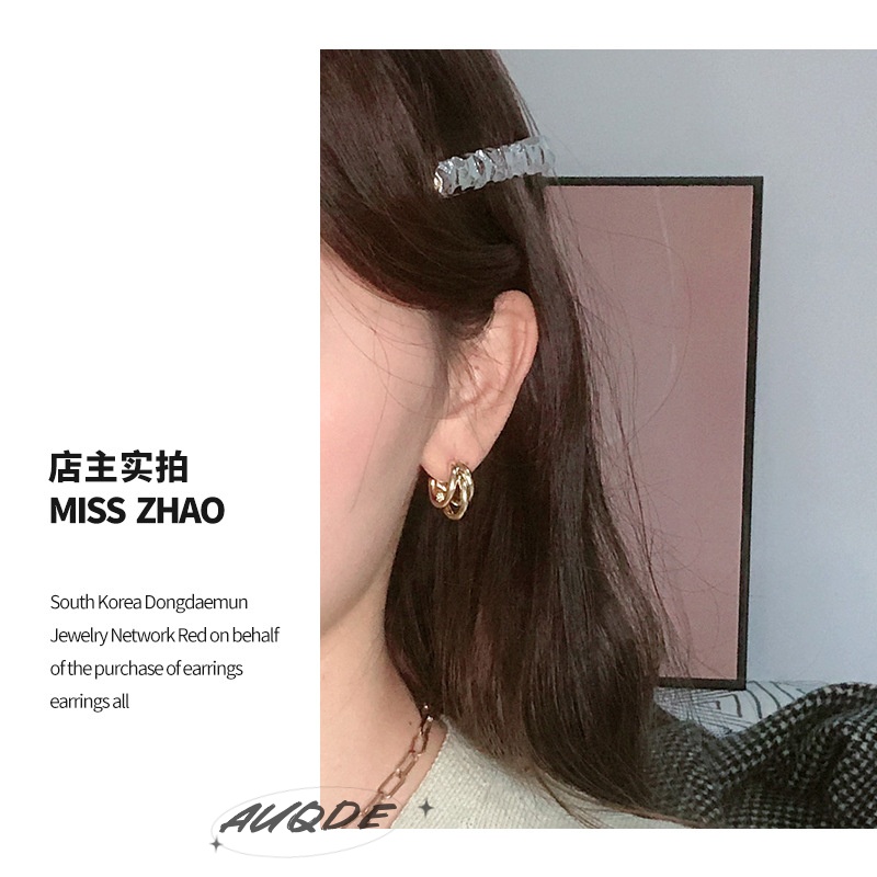 auQDE韩国东大门代购耳钉圆环小众镀金耳饰圆形欧美金属圆圈耳环