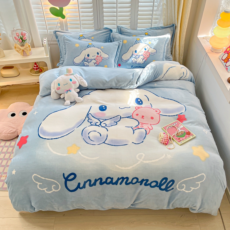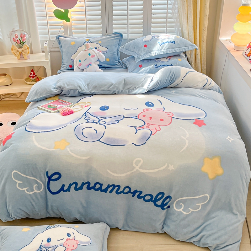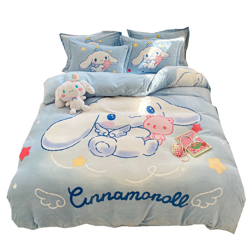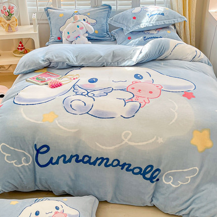 卡通玉桂狗儿童牛奶绒四件套冬季加厚保暖床单被套宝宝绒床品可爱