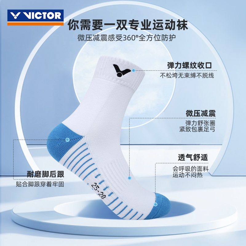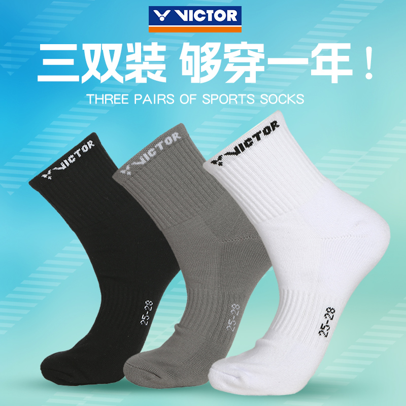 三双victor胜利羽毛球袜男袜女袜威克多加厚棉毛巾底运动袜子透气