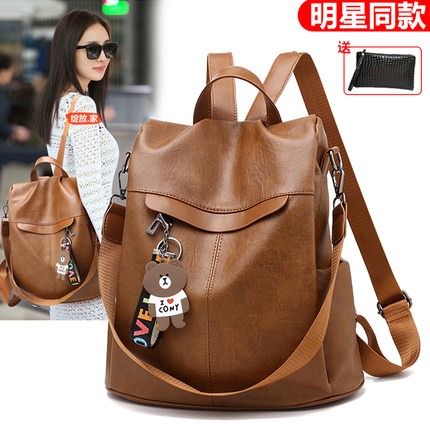 时尚防盗双肩包百搭女软皮旅行包