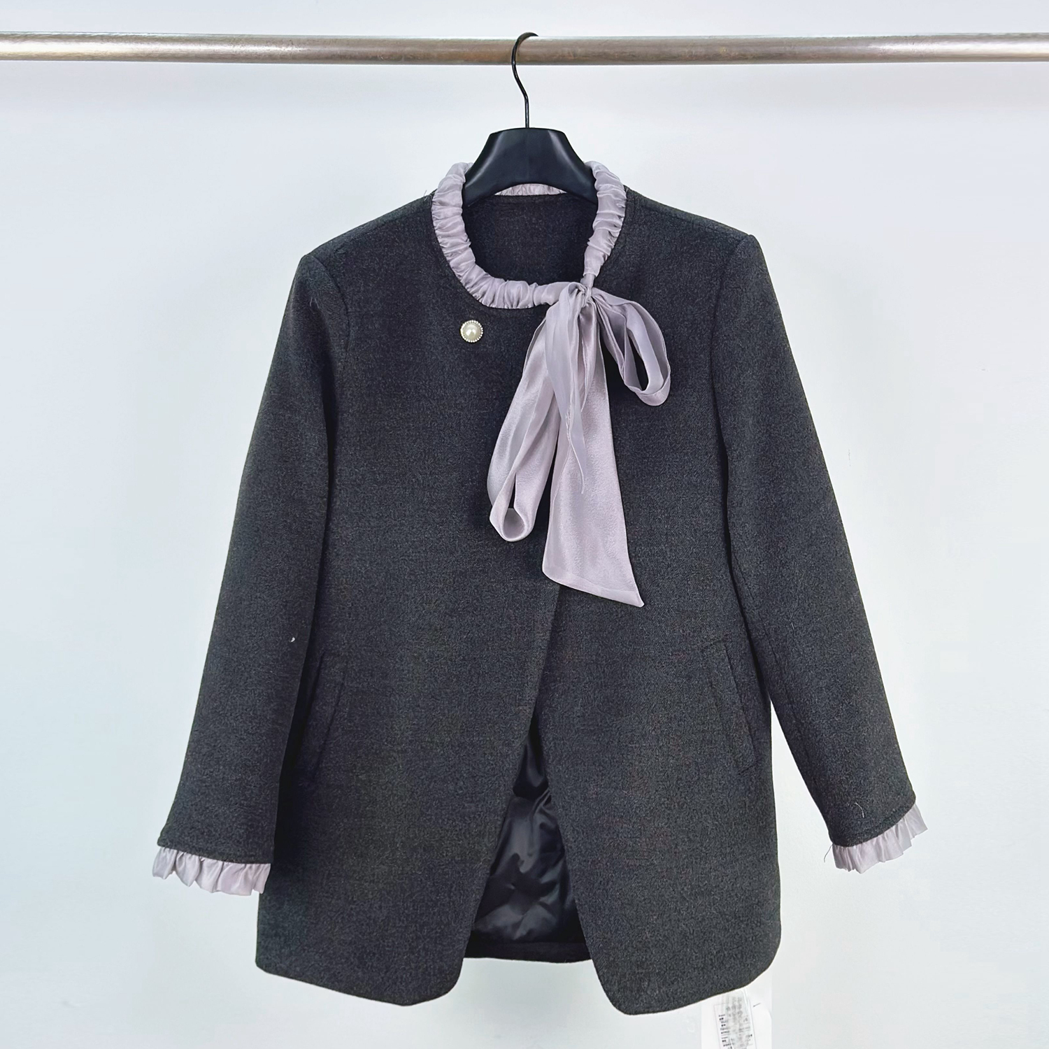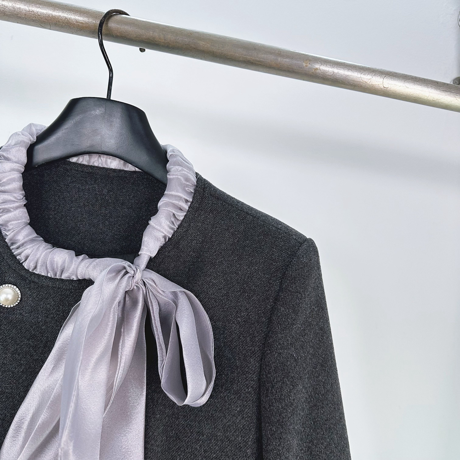 6026法式洋气轻奢小香风羽绒套装女冬蝴蝶结西服外套半身裙两件套