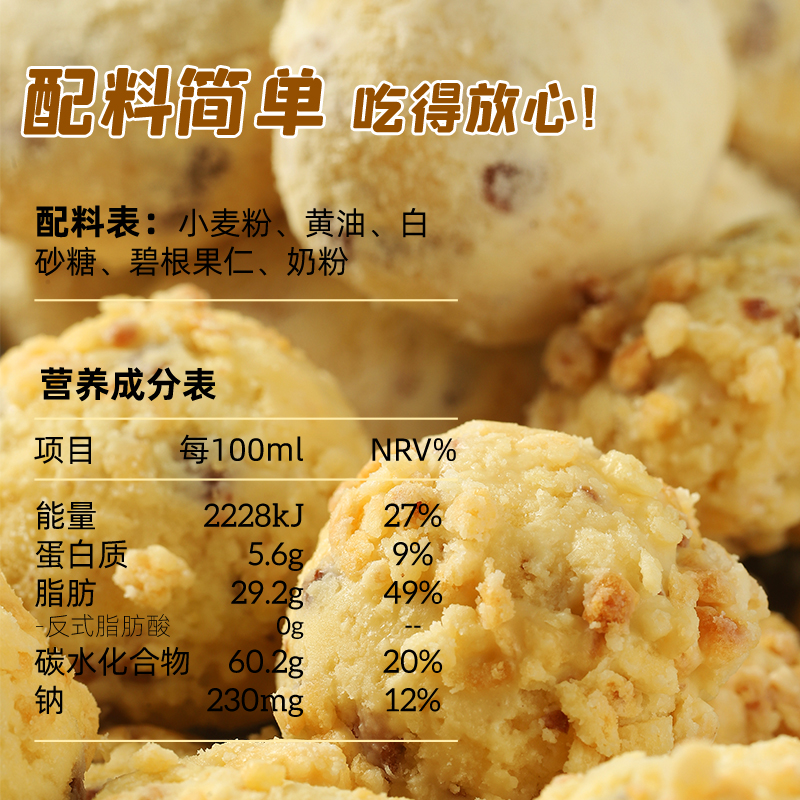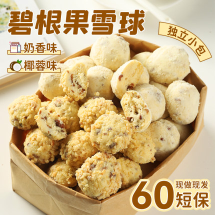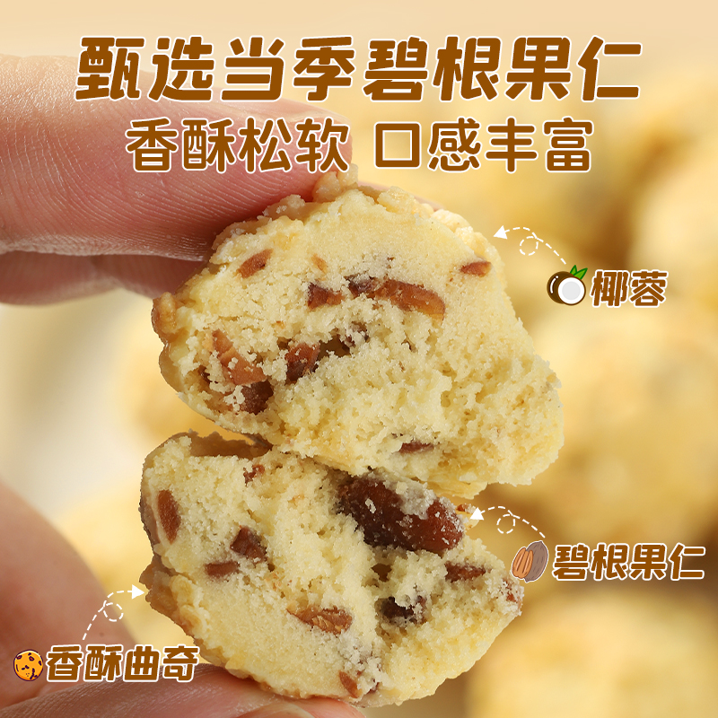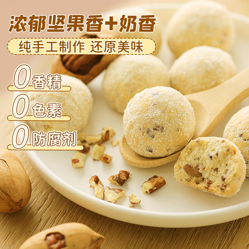 奶呼呼超级好吃!碧根果雪球饼干椰蓉曲奇坚果奶酥手工小包装零食