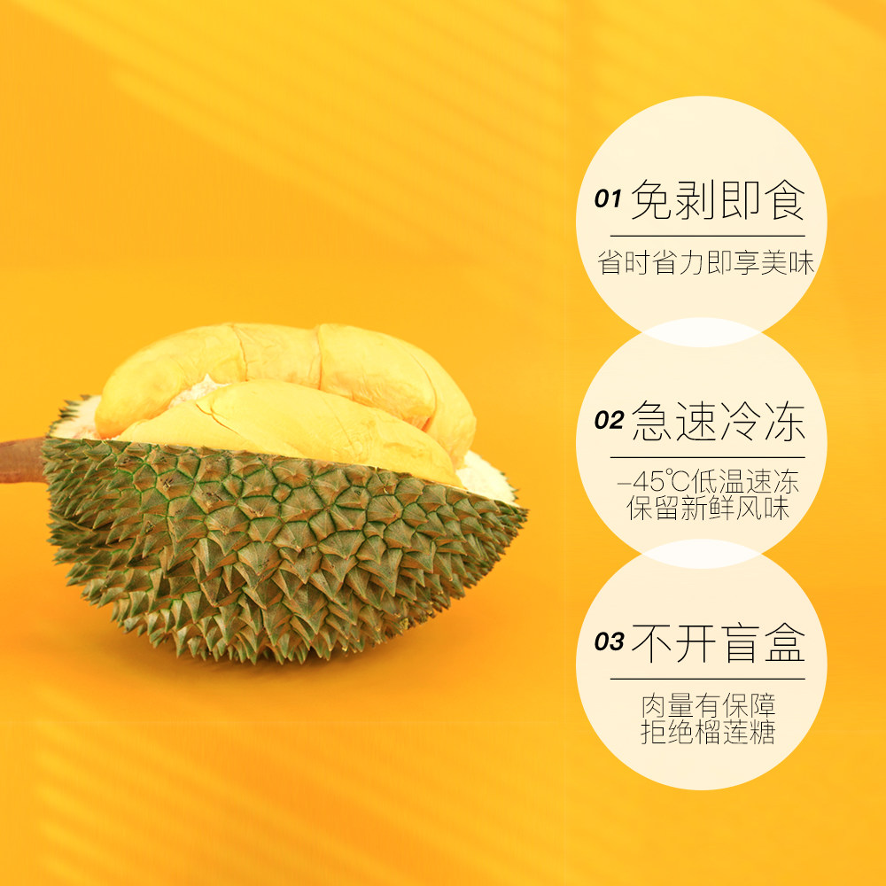 【自营】闲草堂泰国金枕冷冻榴莲肉新鲜900g/袋