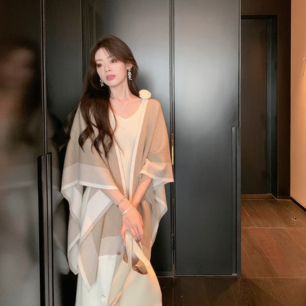ByYou 2025冬季新款高级感羊毛斗篷针织开衫女外搭毛衣披肩外套