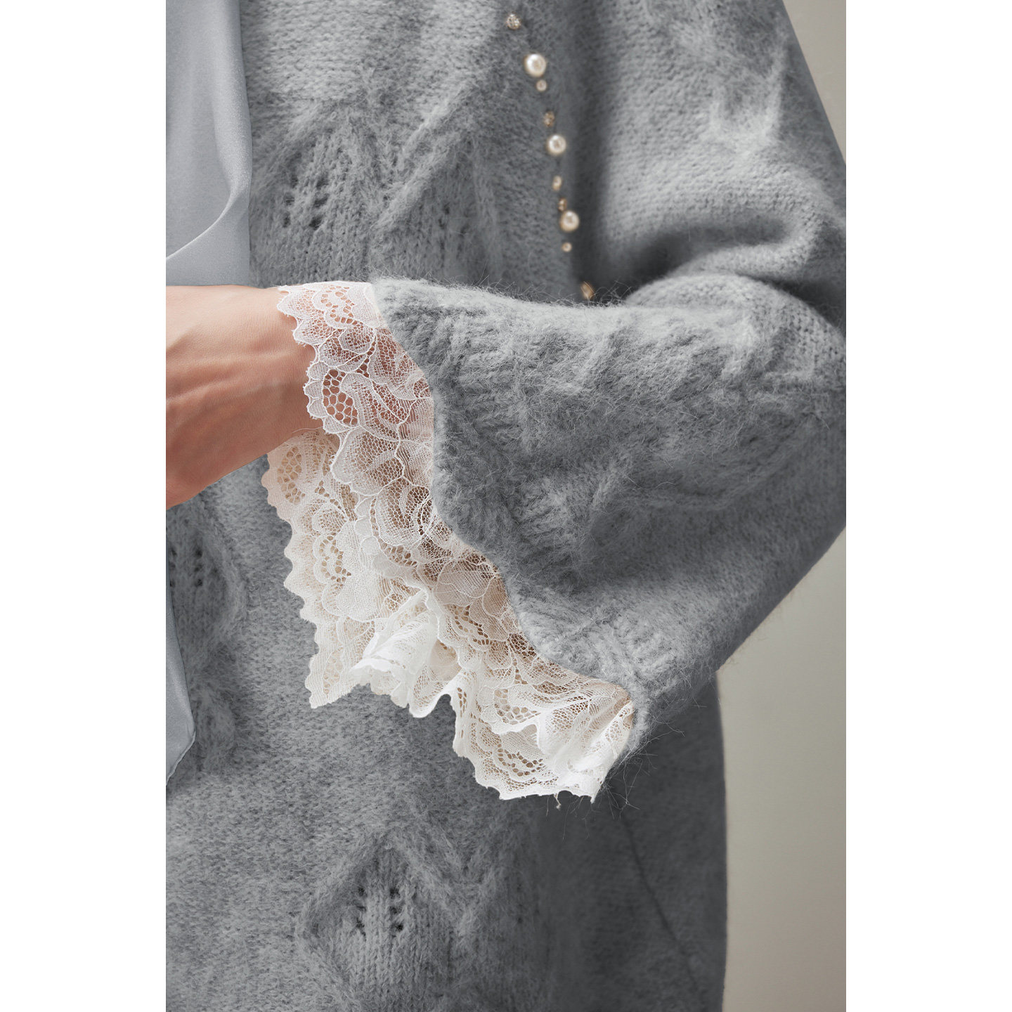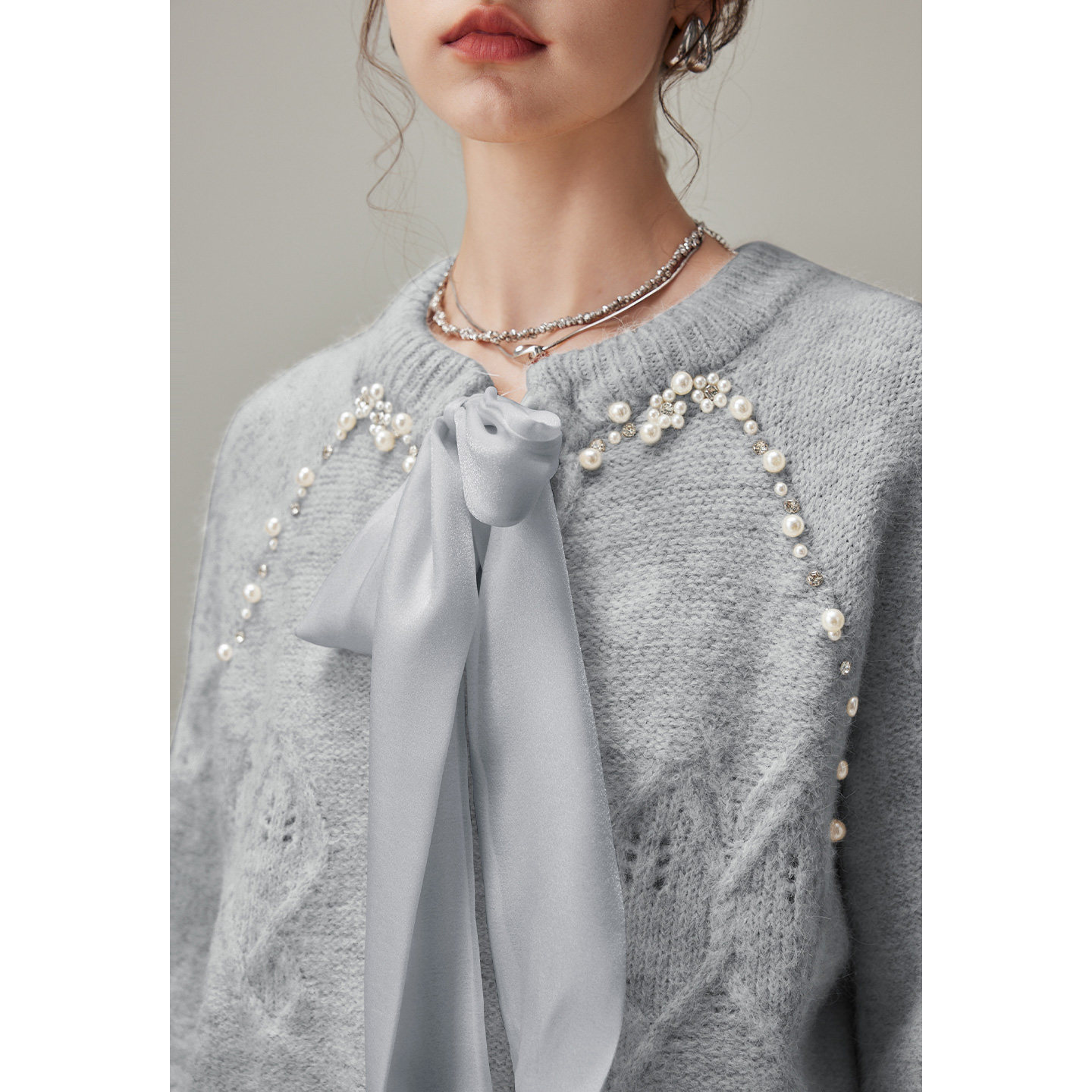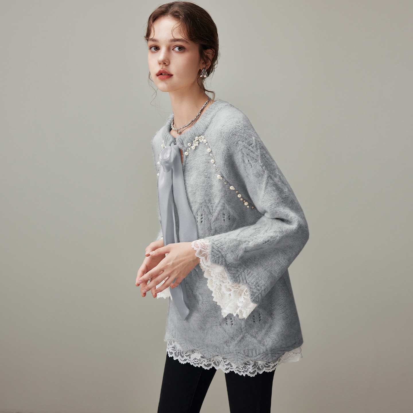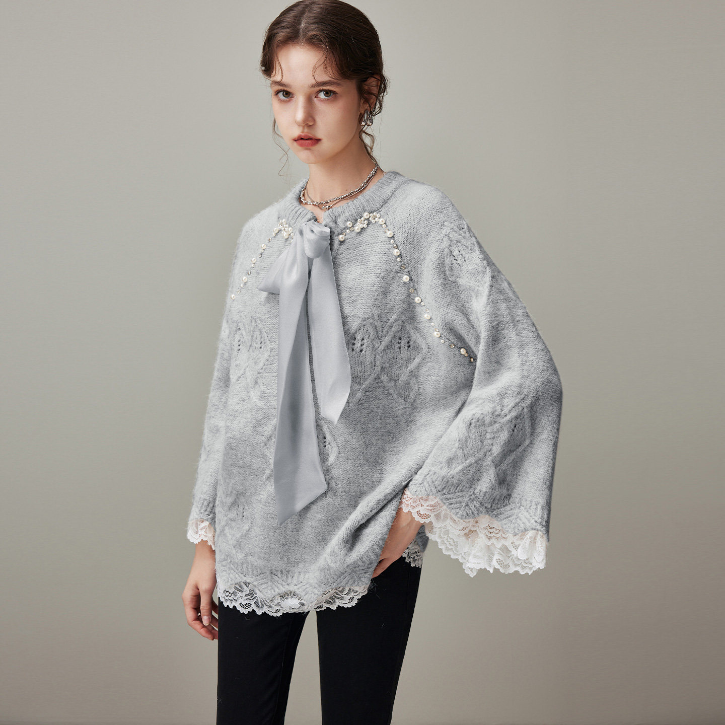 dfvc慵懒风中长款圆领毛衣女2025年冬季新款飘带宽松软糯针织衫