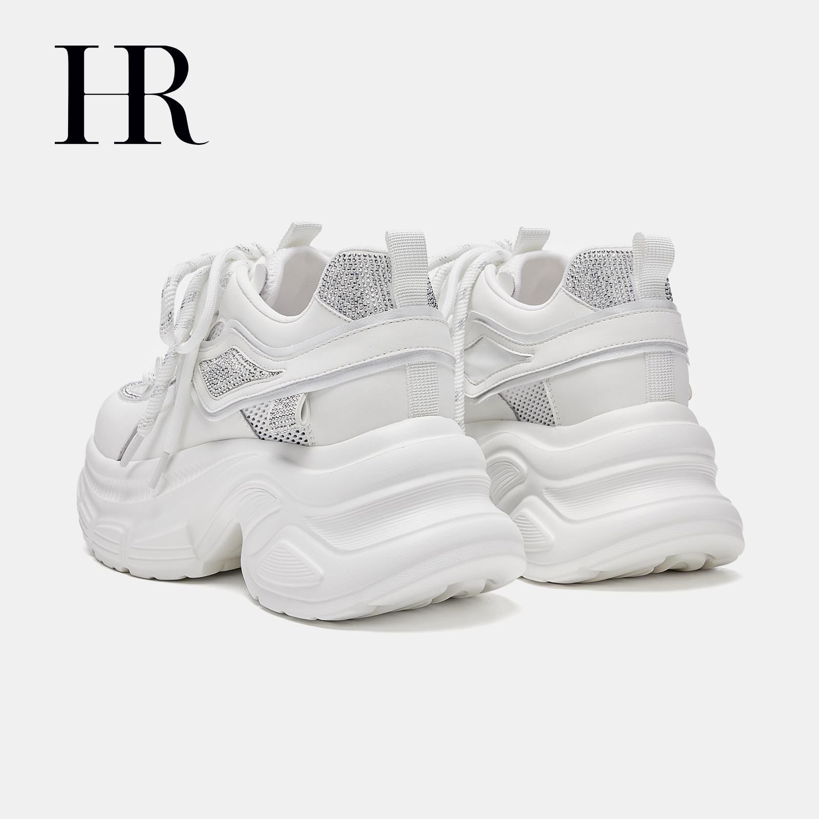 HR赫莲娜女鞋子2025年夏季新款老爹鞋厚底网面烫钻小众透气运动鞋