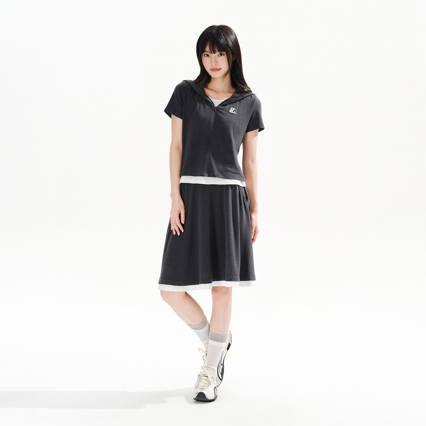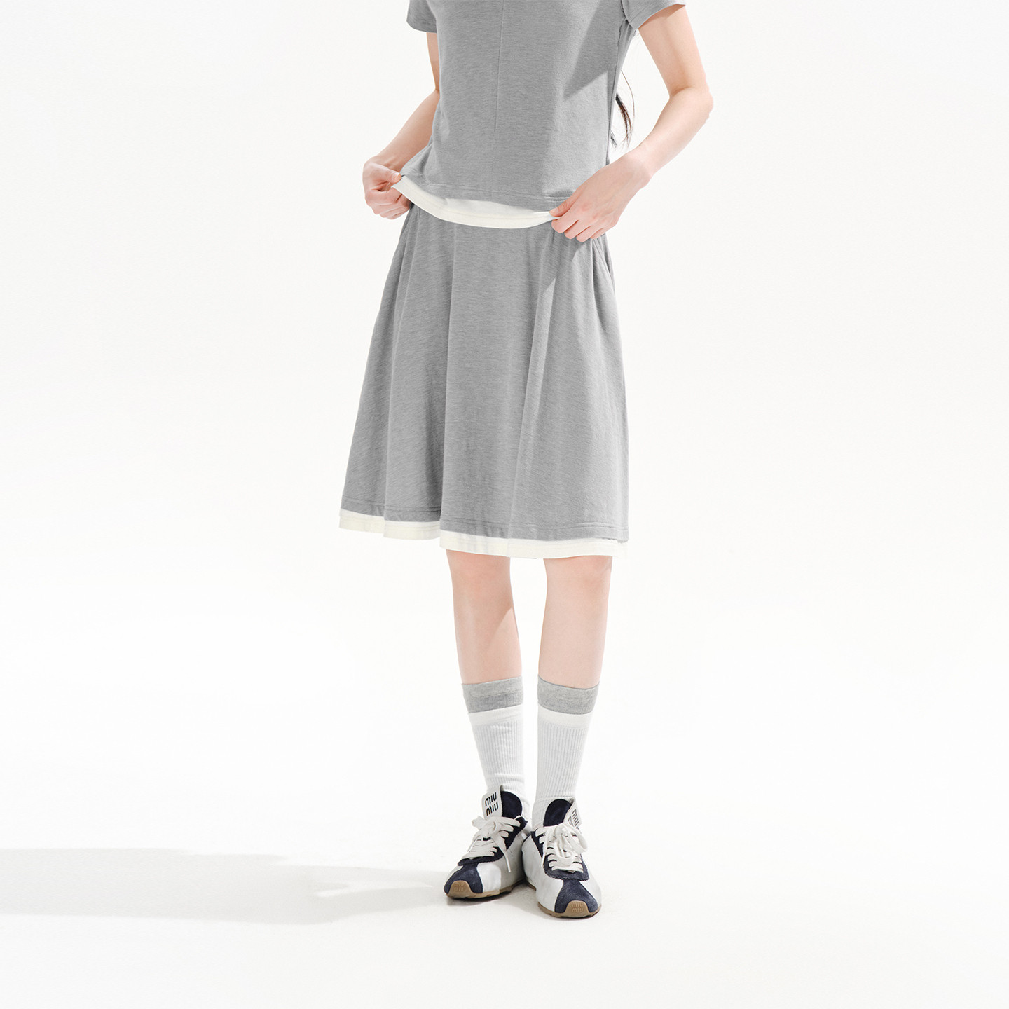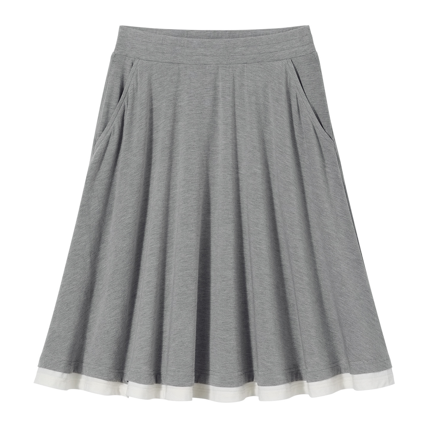 PSO Brand女装假两件微弹针织灰色A字半身裙慵懒风休闲裙子春季