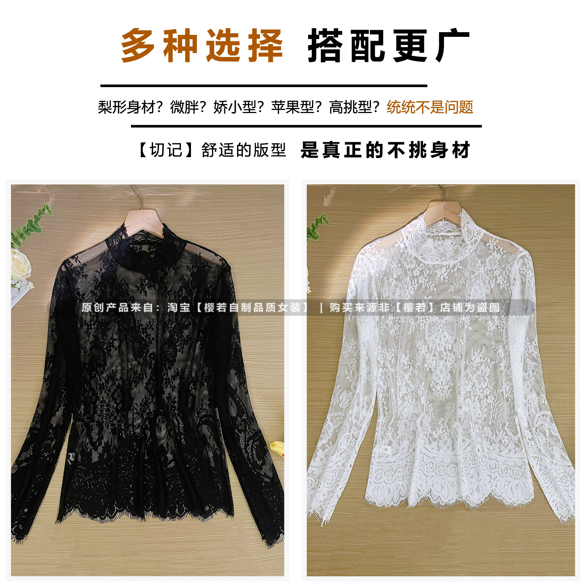 蕾丝打底衫女黑色长袖高级网纱上衣新款白色花边小衫短款秋冬罩钐