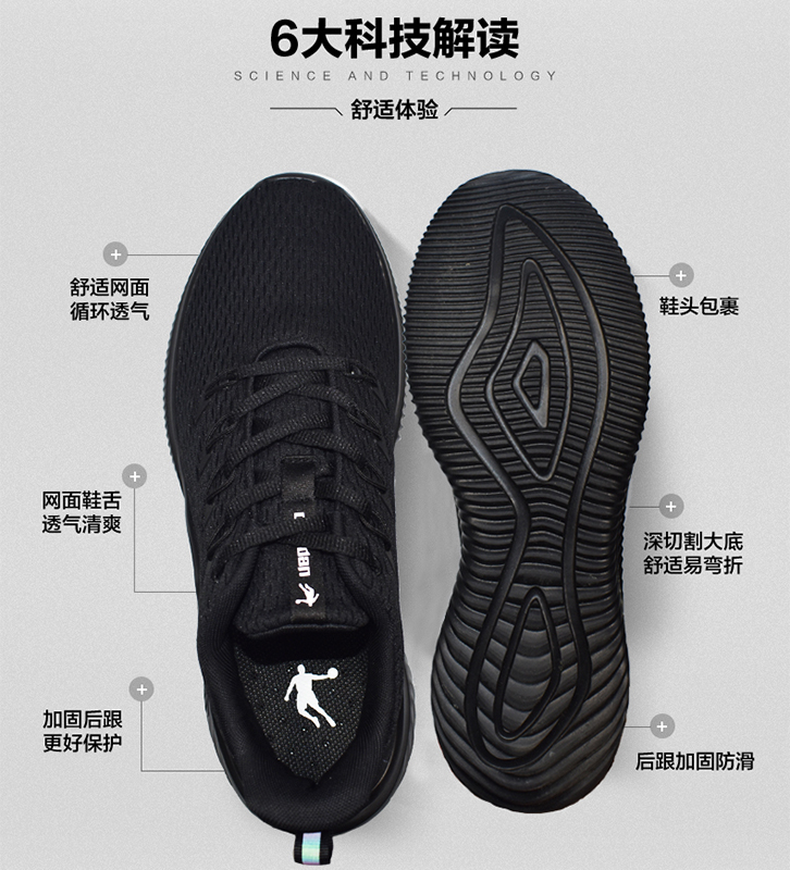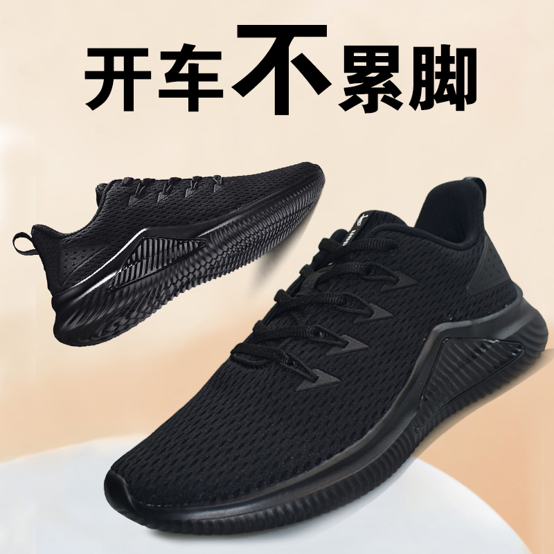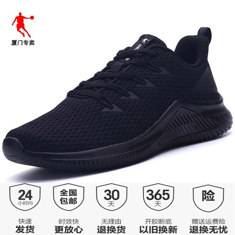 乔丹男鞋纯黑色上班运动鞋网面透气跑步鞋正品软底开车波鞋旅游鞋