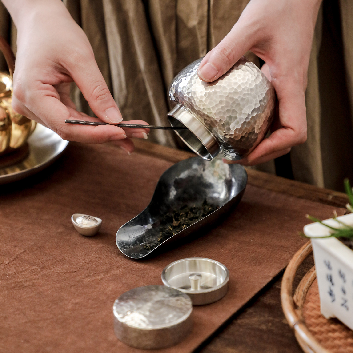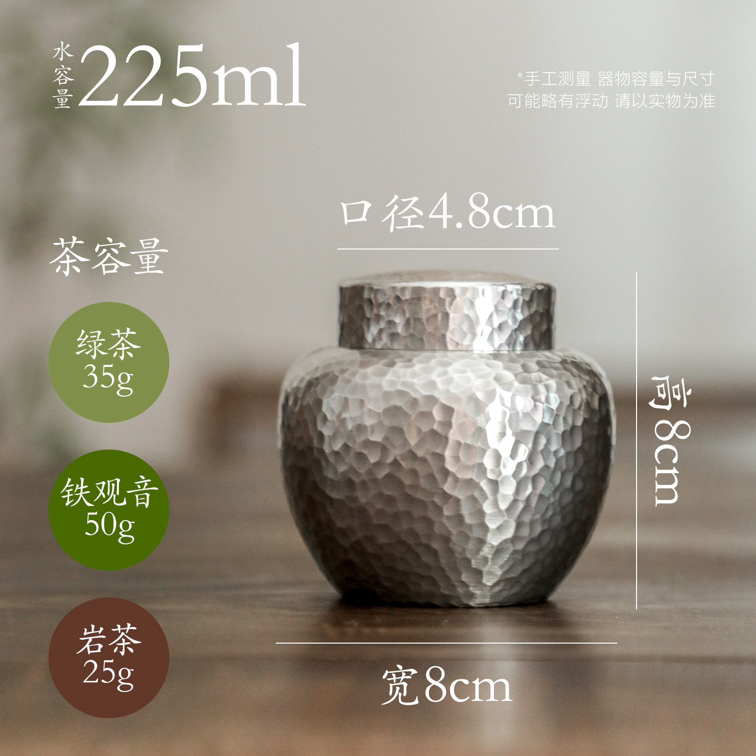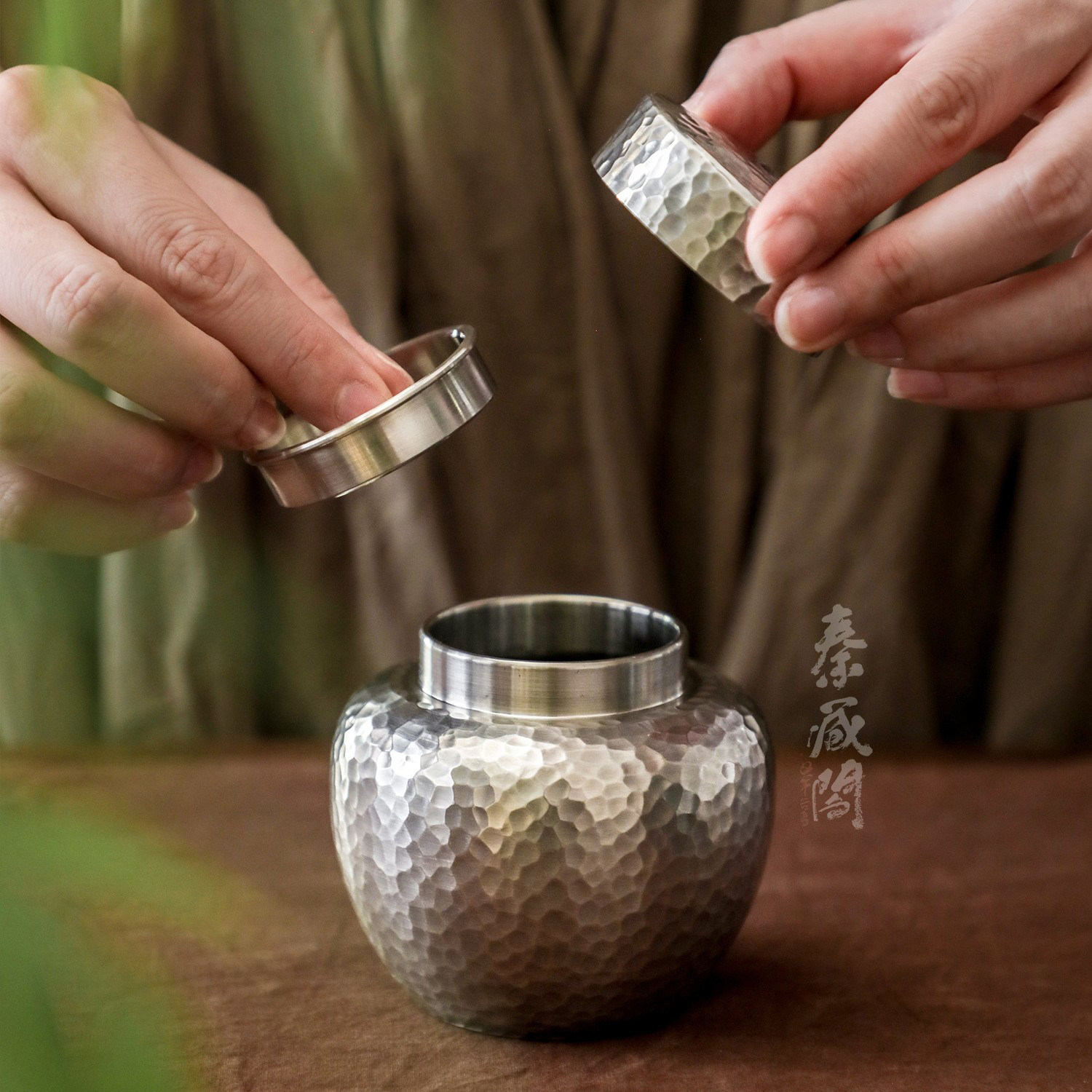 秦藏阁 云华锡罐纯锡茶叶罐纯手工密封旅行茶罐金属无铅锡器小号