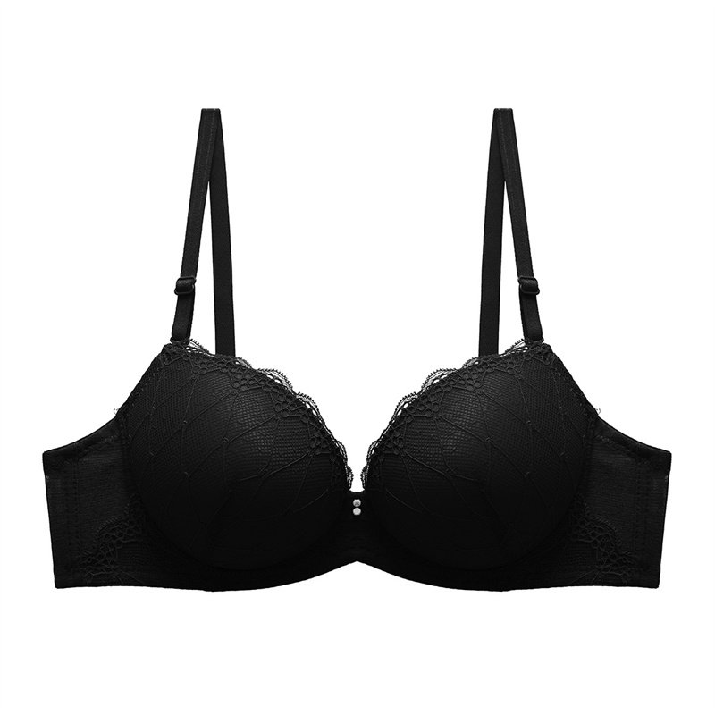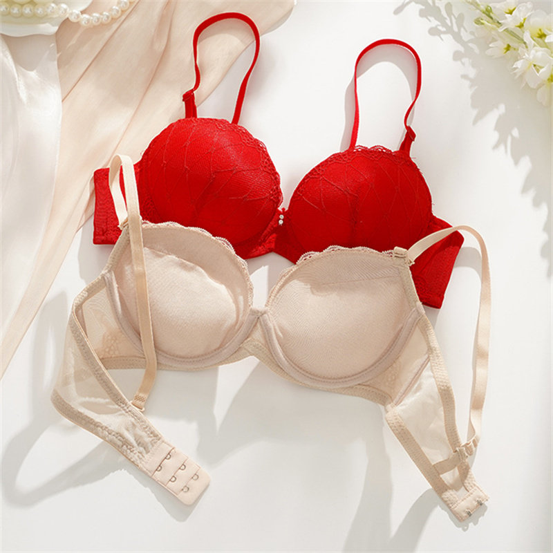 岱夫人少女加厚4CM小胸超聚拢文胸内衣有钢圈定型双排扣性感蕾丝