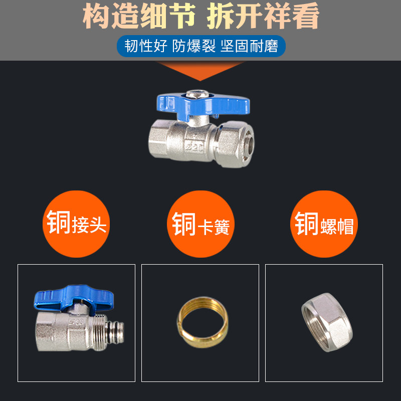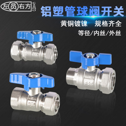 铝塑管阀门1216/1418/1620/2025/2632转4分6分1寸内外丝黄铜球阀