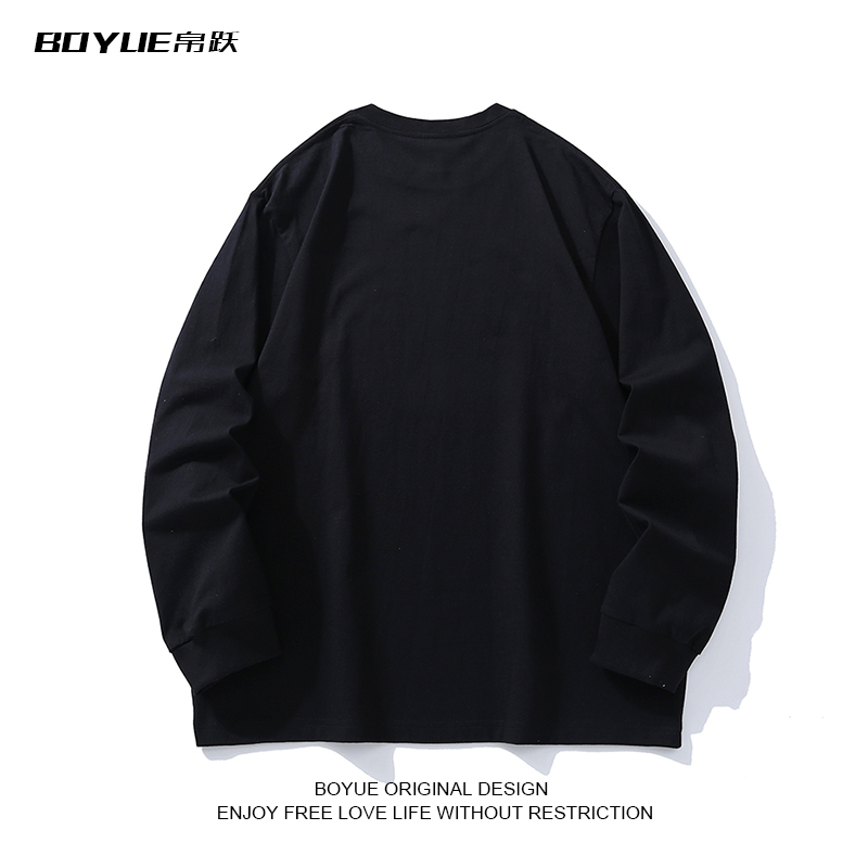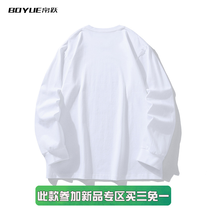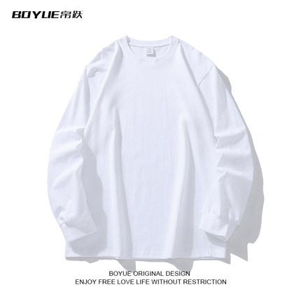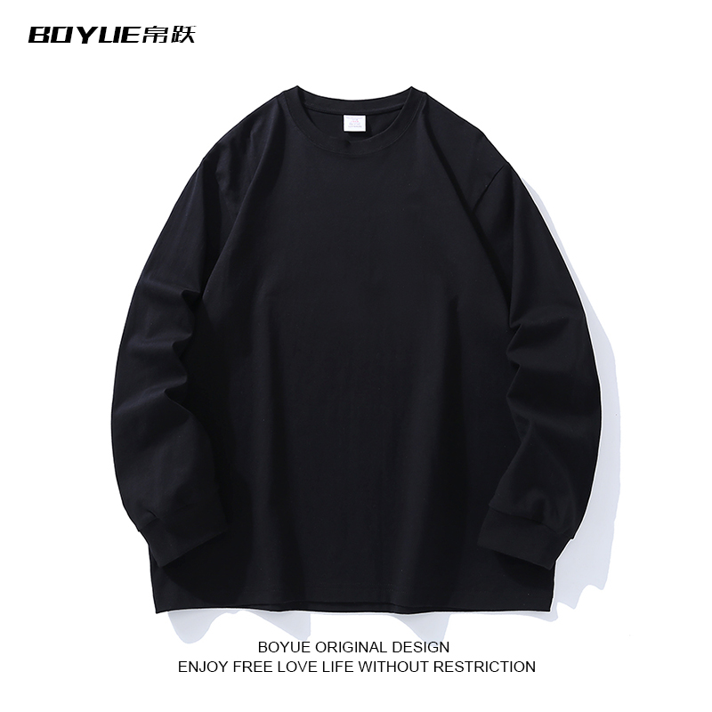 BOYUE帛跃秋冬纯色长袖T恤男女简约oversize宽松纯棉重磅打底衫潮