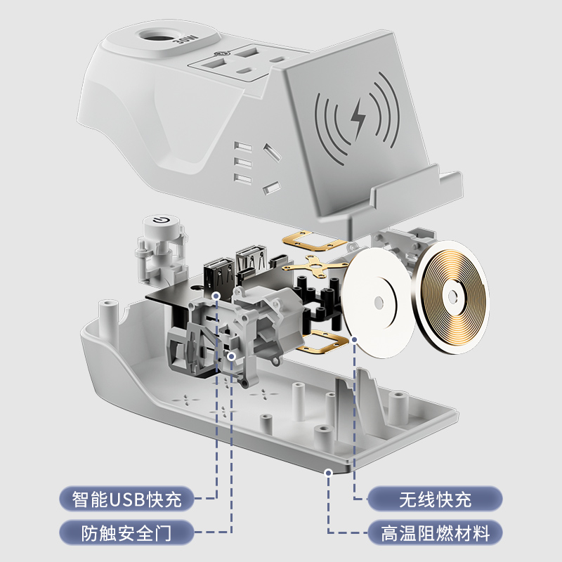 无线充电插座插排30W超级快充带USB排插家用办公多功能插线板长线
