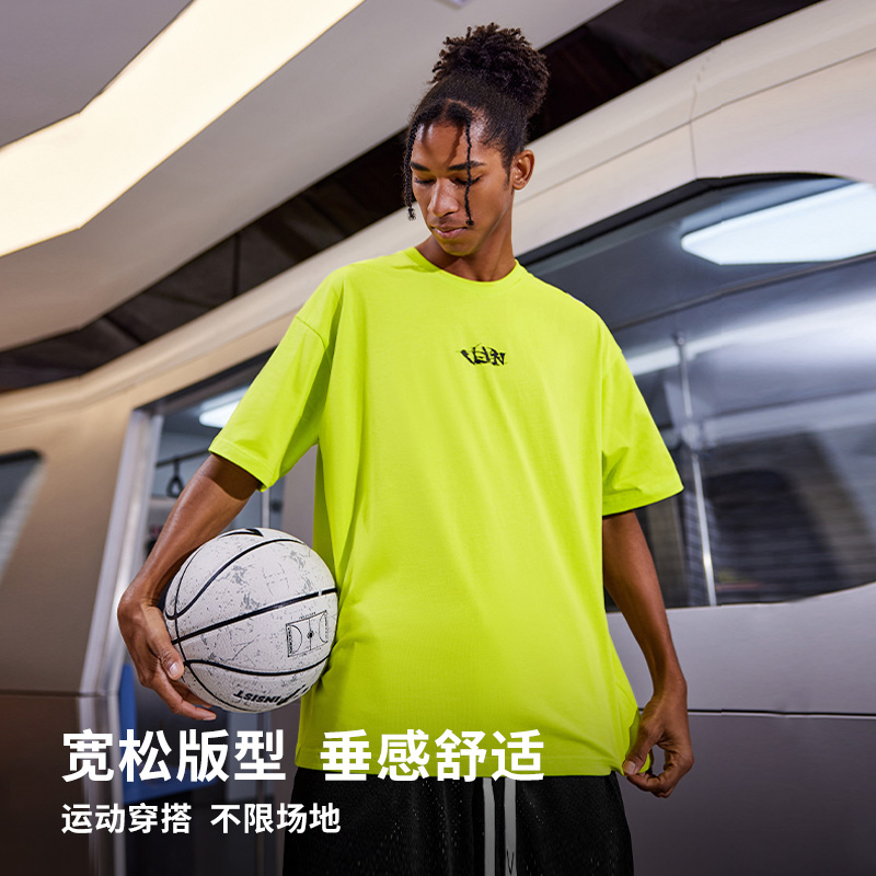 维动蓄势短袖男篮球运动针织美式圆领T恤衫纯棉宽松休闲半袖夏季V
