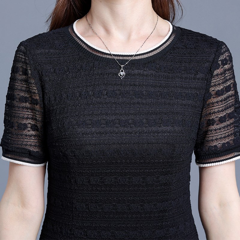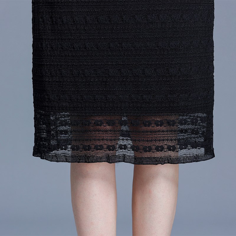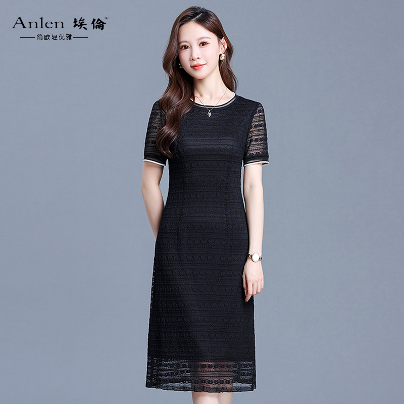 埃伦中长款修身显瘦气质连衣裙女2025夏季新款黑色蕾丝优雅减龄裙