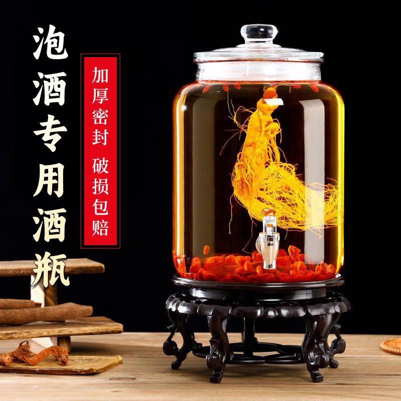 泡酒玻璃瓶密封带龙头人参药酒白酒泡酒专用罐子加厚家用泡酒坛子