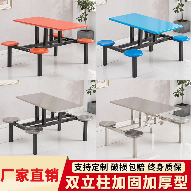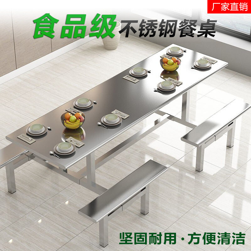 不锈钢餐桌椅学校食堂餐桌椅组合4人6人8人工厂餐厅员工连体快餐