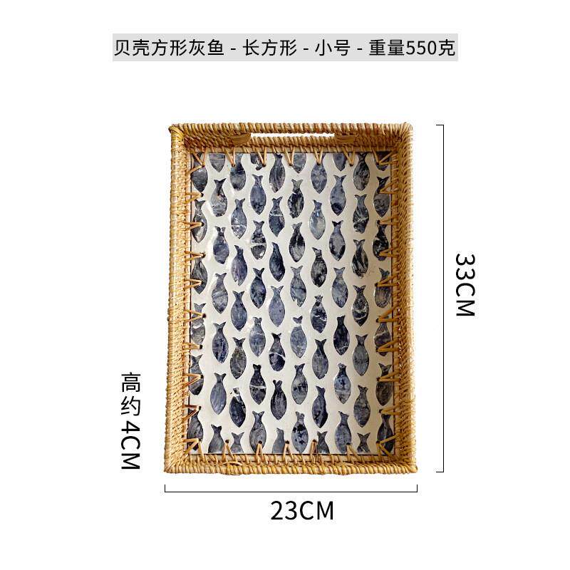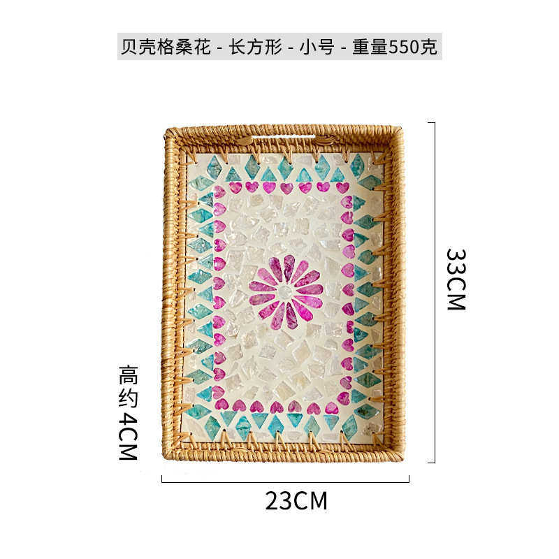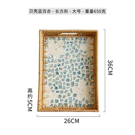 藤编贝壳彩色收纳托盘方形家用点心零食果盘客厅餐厅轻奢大小茶盘