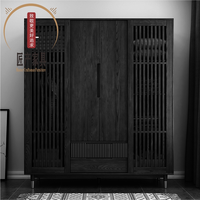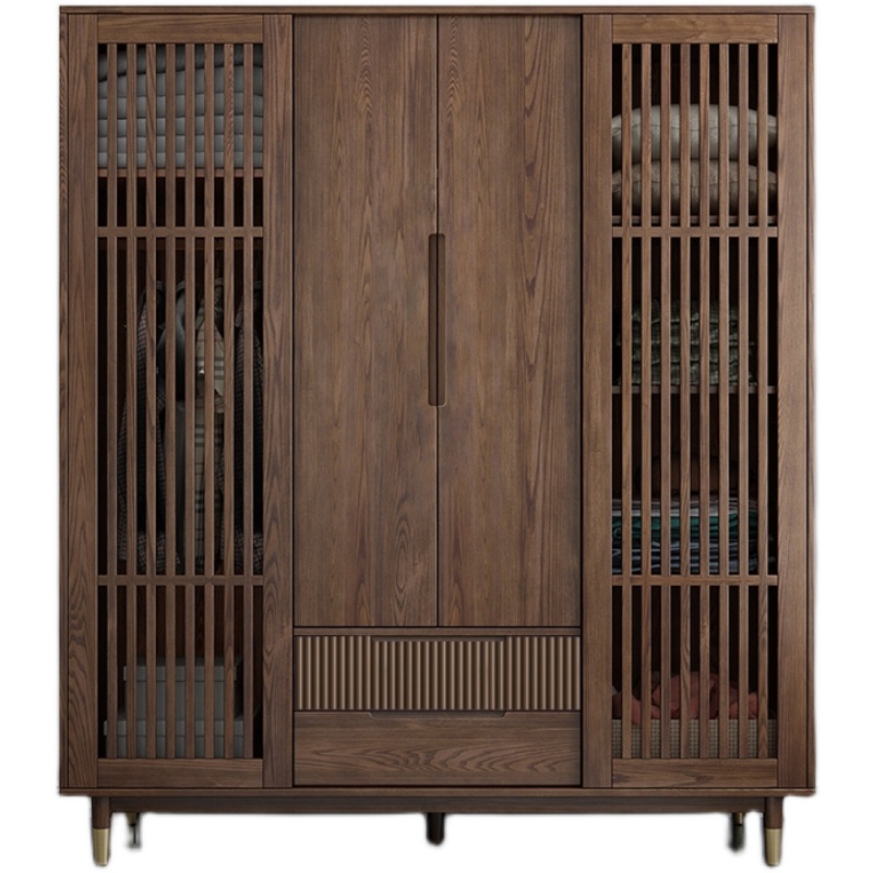 北欧轻奢纯实木衣柜四门衣橱白蜡木收纳日式简约胡桃色带抽大衣柜