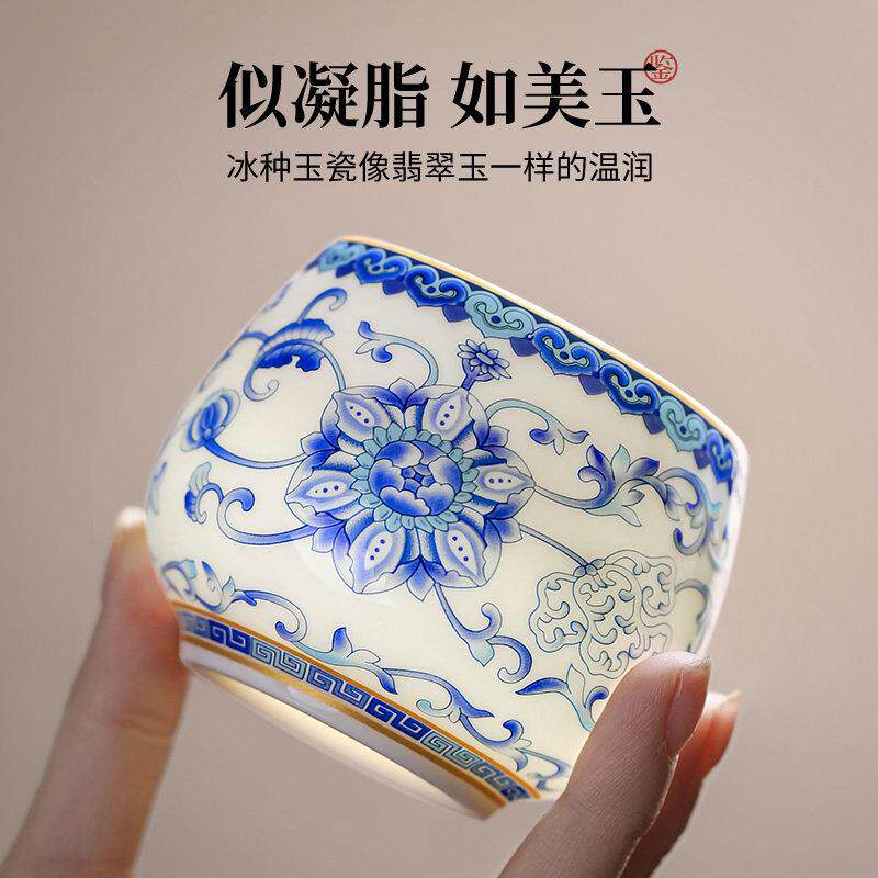 羊脂玉瓷茶杯单个大容量主人杯茶盏家用办公个人专用送人生日礼物