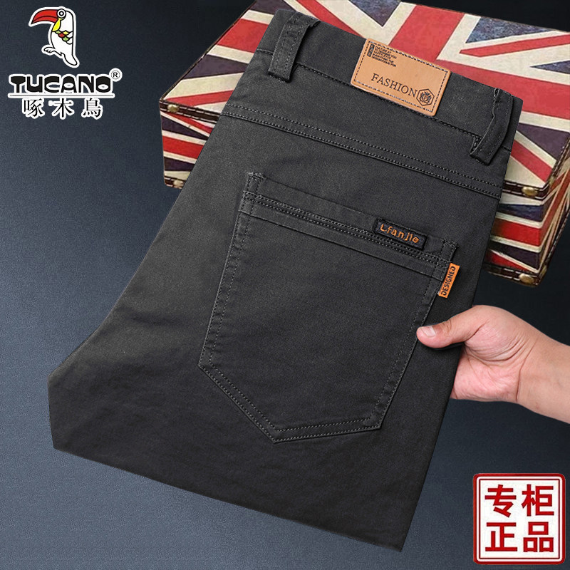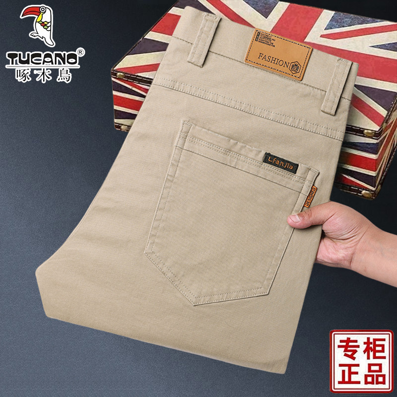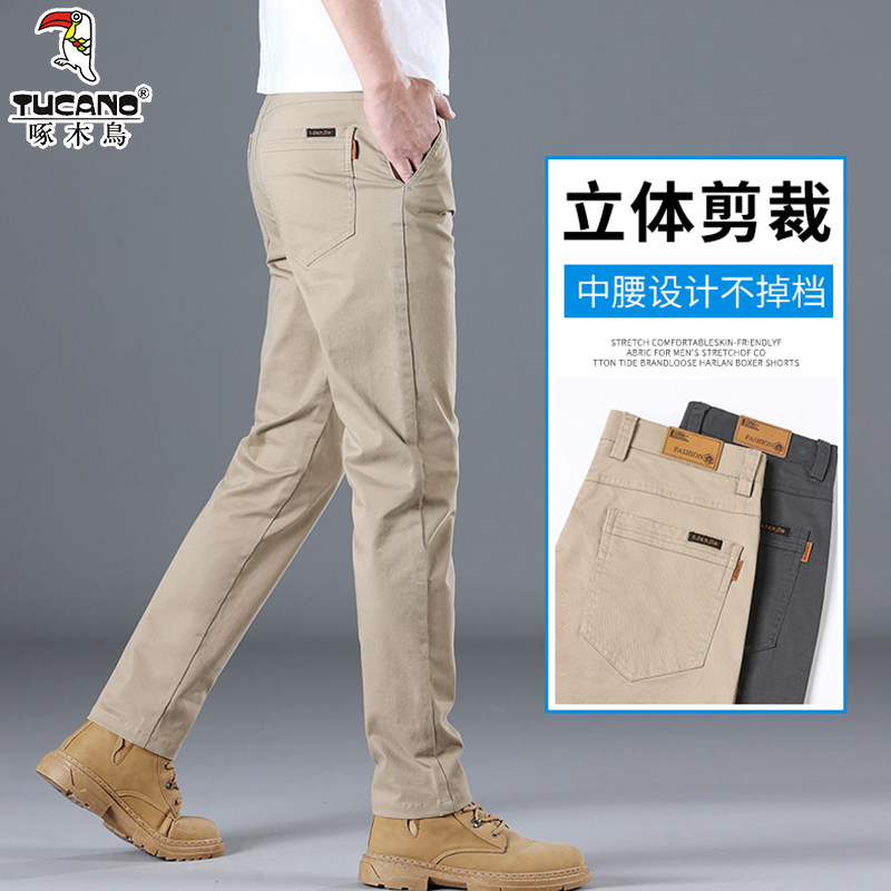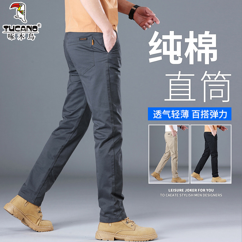 啄木鸟男士纯棉休闲裤秋季新款棉弹小直筒修身百搭男裤商务长裤子