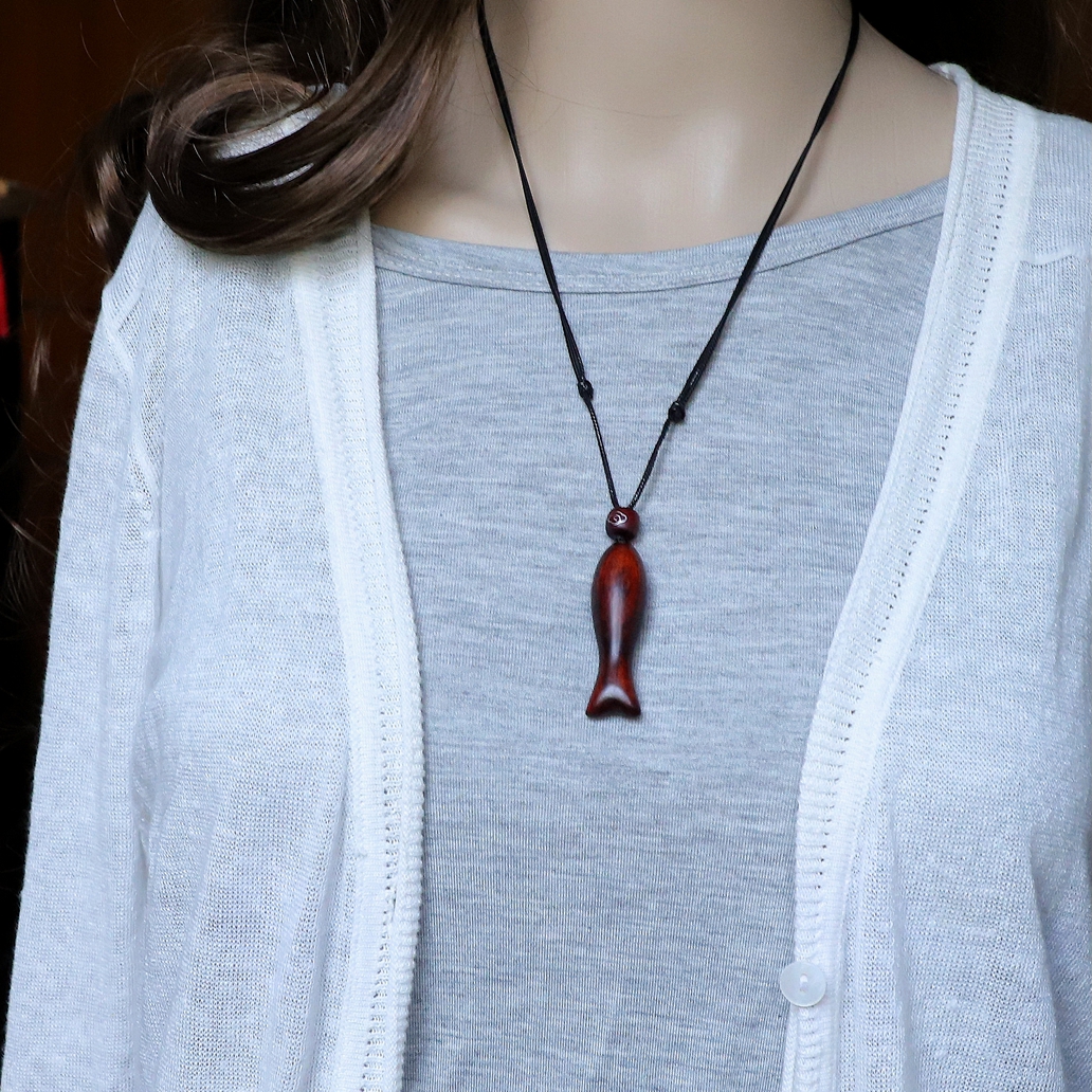 紫檀木小鱼项链长款文艺气质范原创设计古风毛衣链挂件学生挂配饰