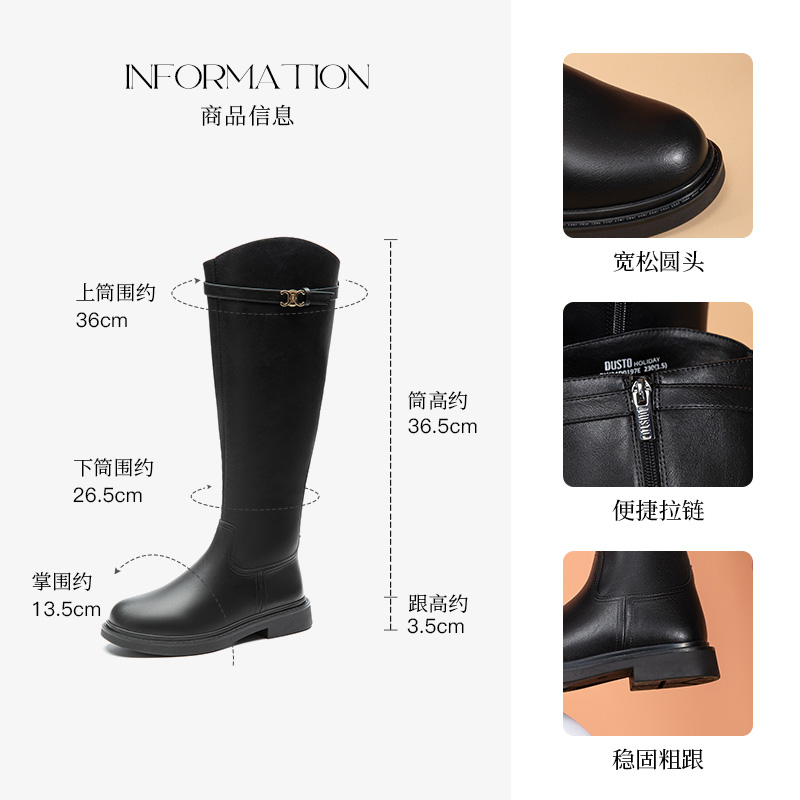大东骑士靴女靴2025冬季新款时装通勤长筒靴保暖加绒平跟职业长靴