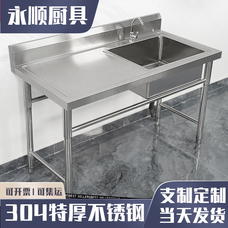 304不锈钢水槽厨房支架商用y饭店洗衣台洗菜盆洗碗池带平台洗刷盆