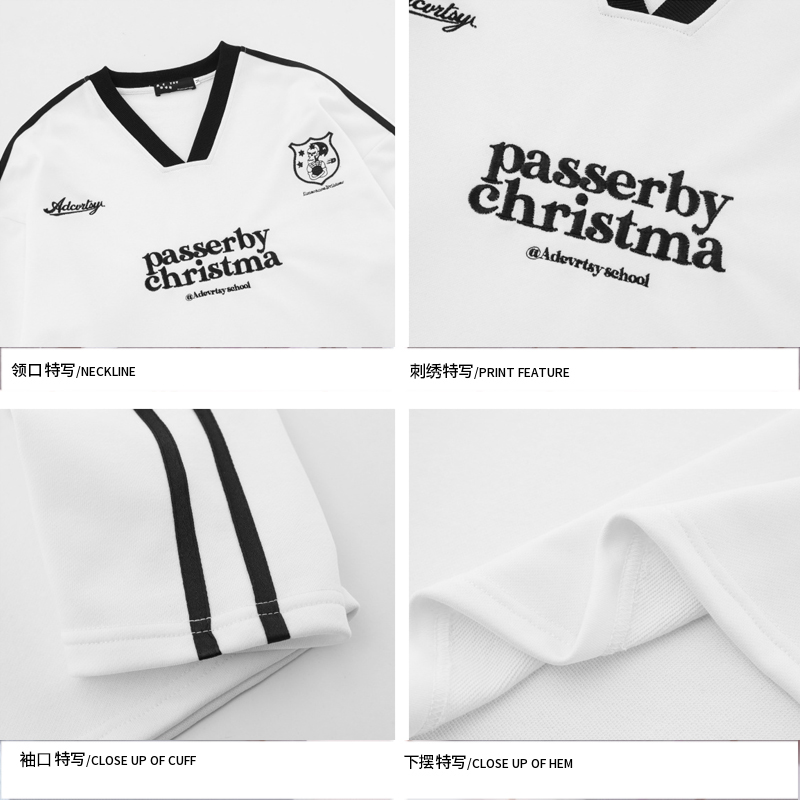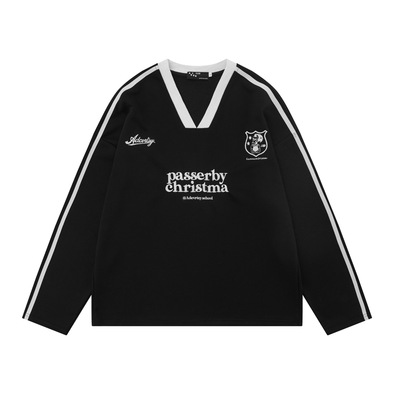 美式复古字母刺绣v领卫衣女潮牌