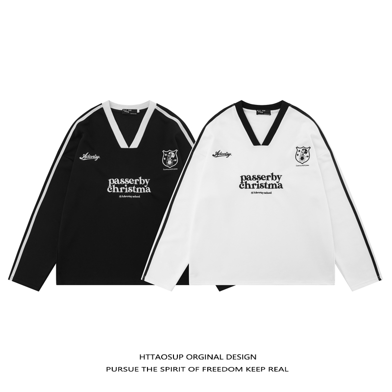 HTTAOSUP美式复古字母刺绣v领卫衣女潮牌设计感情侣宽松套头上衣
