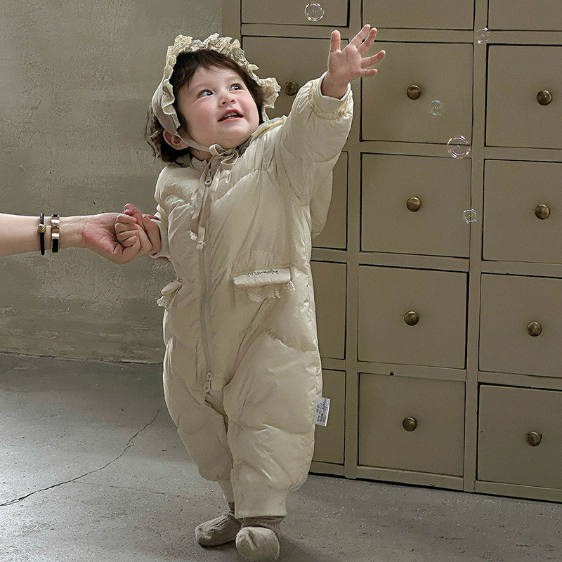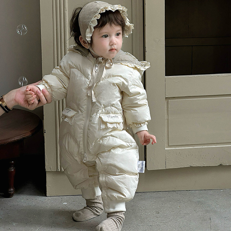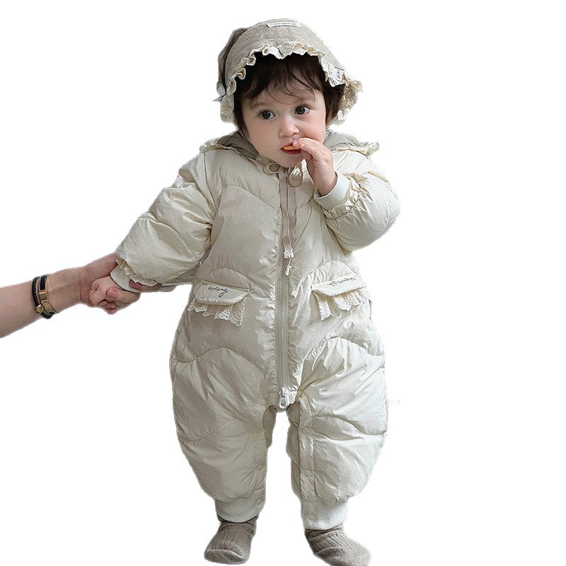 婴幼儿羽绒连体衣冬季新款加厚保暖宝宝爬服白鸭绒 a类女宝宝哈衣