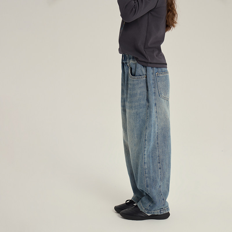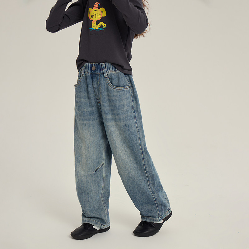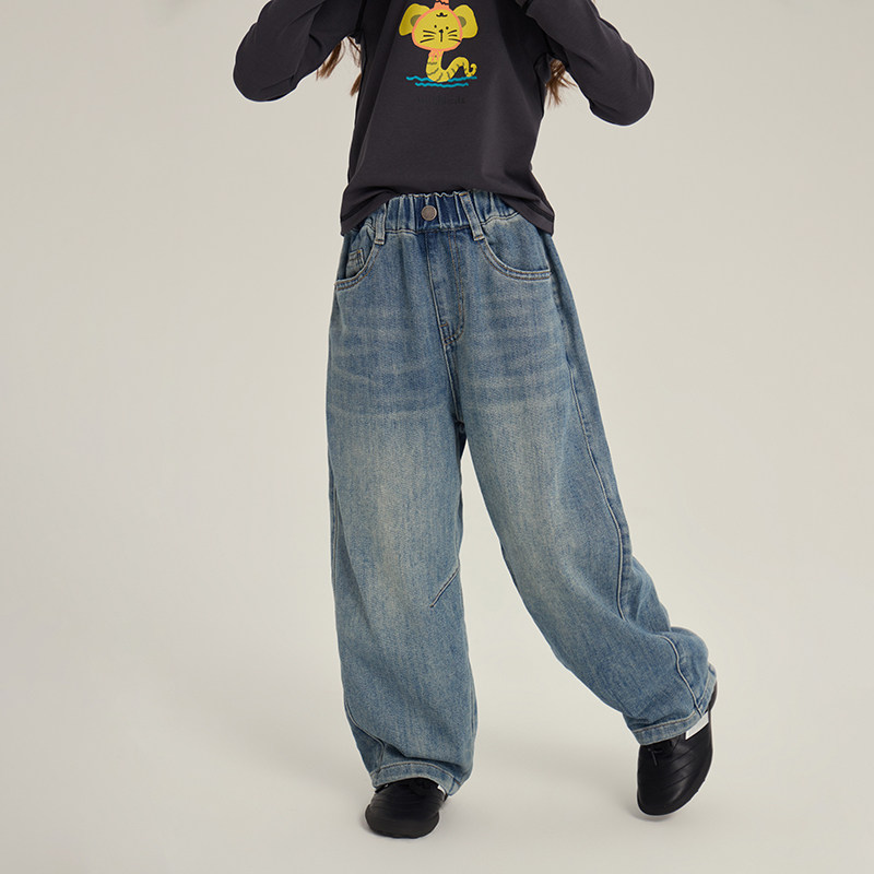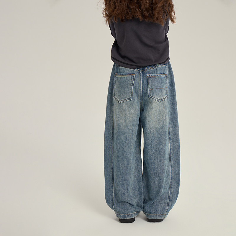 Yumi妈女童拼接阔腿牛仔裤秋装儿童宽松百搭直筒裤25F174