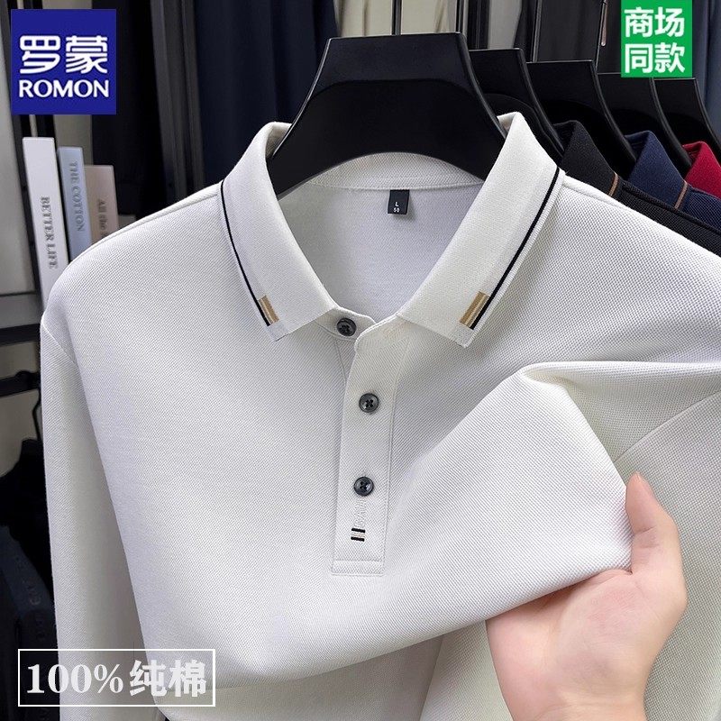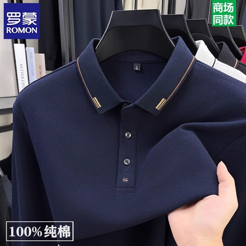 罗蒙100%纯棉长袖T恤男士2025春秋季新款翻领商务休闲中年Polo衫