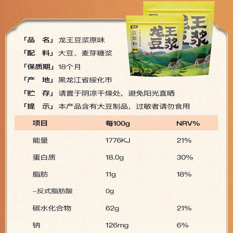 【官方正品】龙王豆浆粉(原味/甜味非转基因大豆袋装独立包装早餐