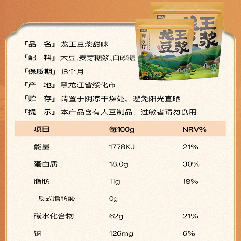 龙王豆浆粉非转基因大豆
