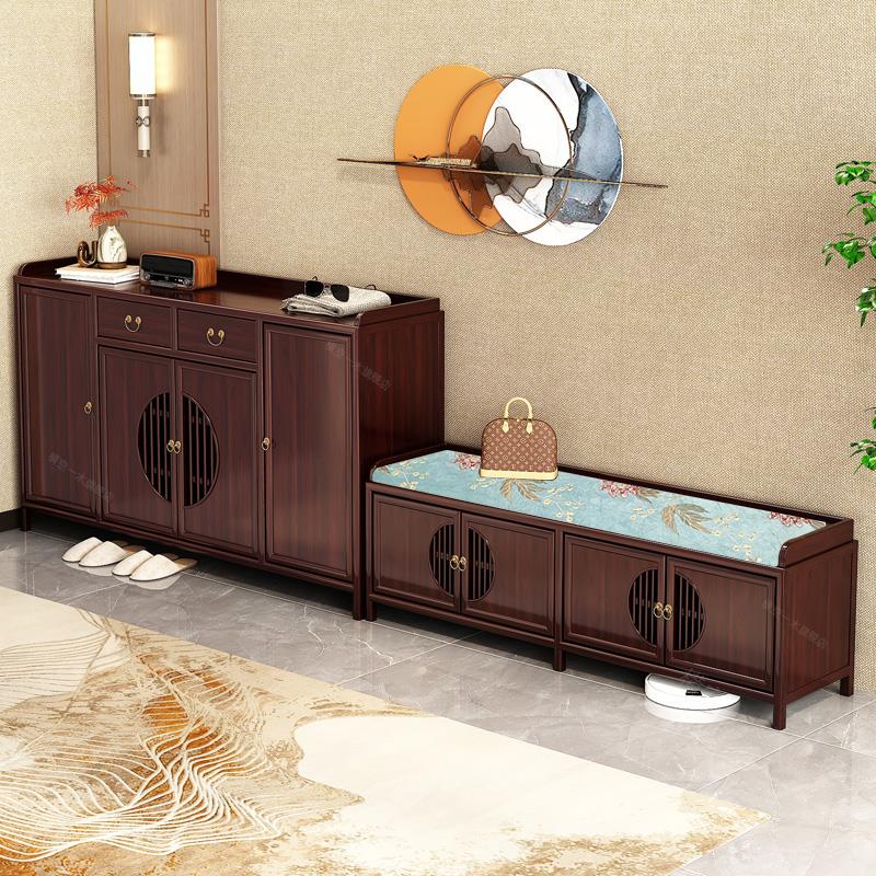 乌金木实木鞋柜一体可坐式穿鞋凳家用收纳凳中古换鞋凳入户储物凳