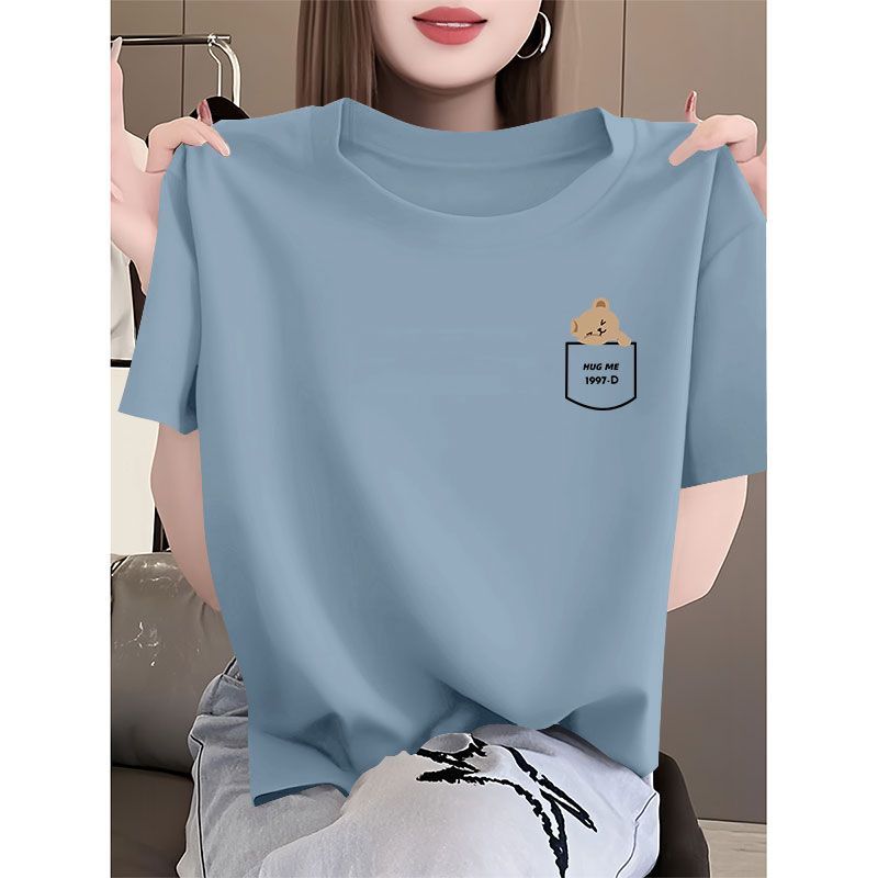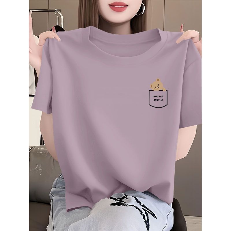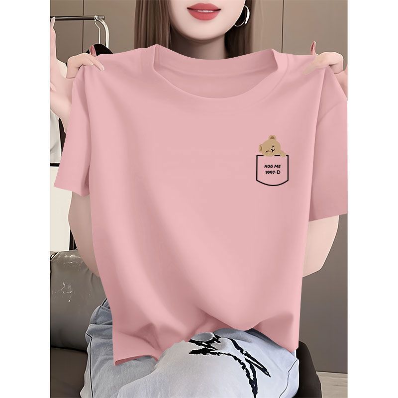 夏季纯棉女装短袖圆领T恤时尚通勤韩版百搭爆款宽松显瘦休闲上衣