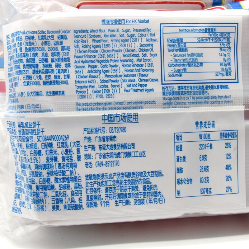 香港风味大地南乳椒盐饼干400g*3包 雪花糕原料 咸味广东休闲零食