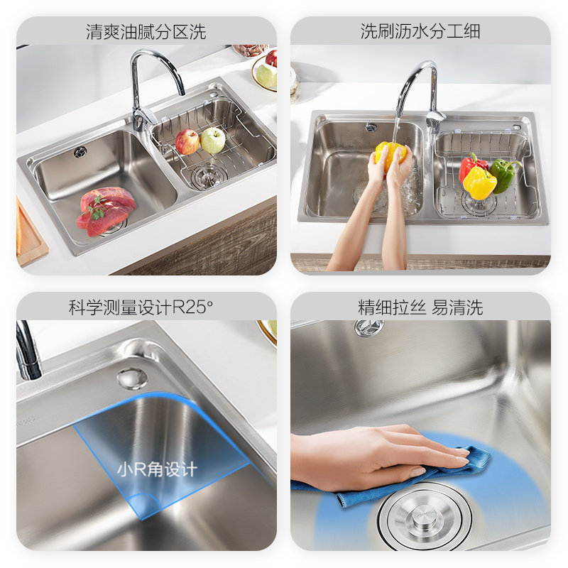 九牧卫浴官方厨卫自营水槽双槽厨房304不锈钢洗菜盆手洗碗盆龙头