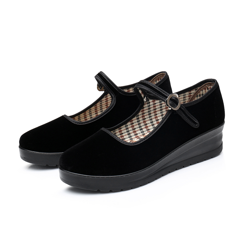 老北京布鞋中跟厚底女单鞋坡跟黑布鞋酒店工作鞋防滑舞蹈鞋礼仪鞋