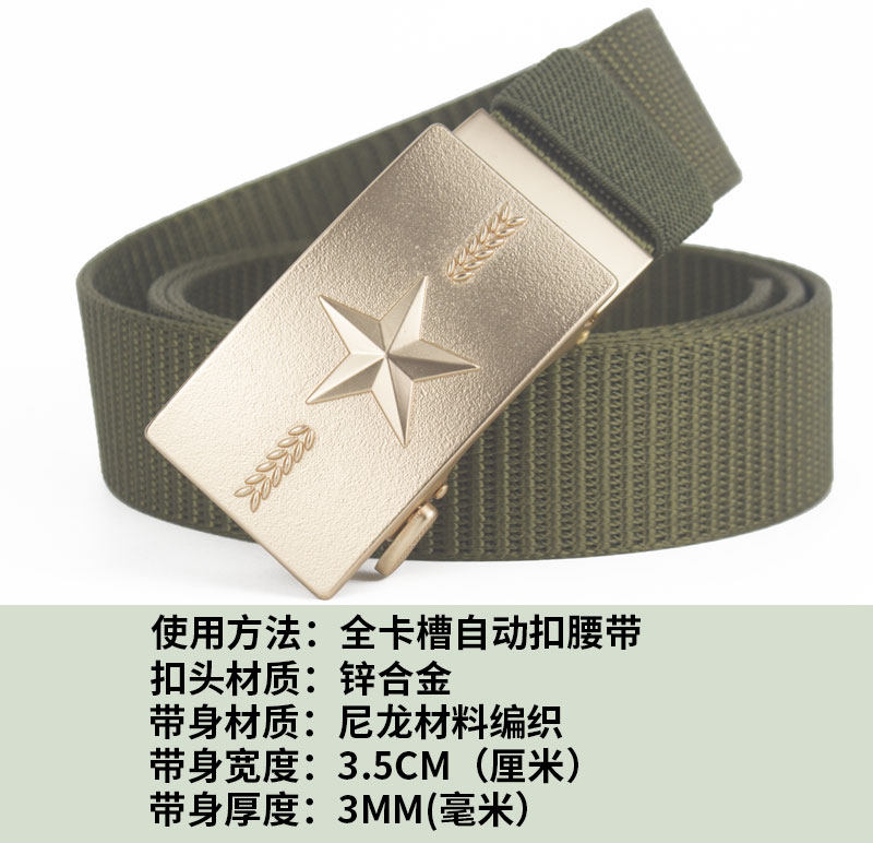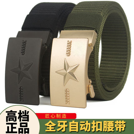 新款帆布尼龙自动扣皮带男军训无孔腰带男款学生加长高档工装裤带