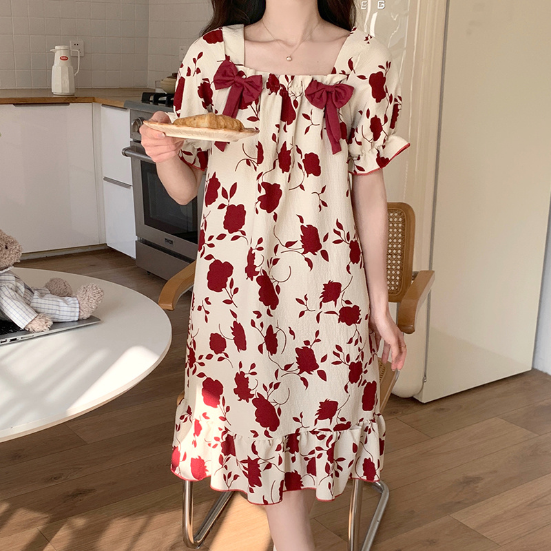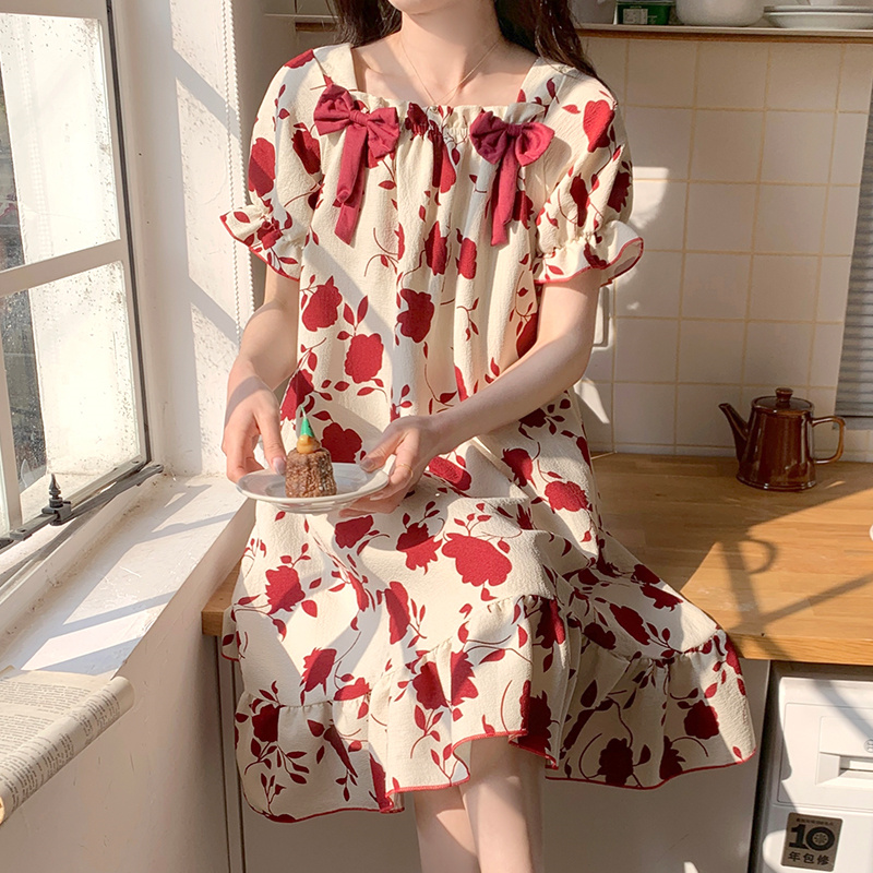 带胸垫睡裙女款夏季梭织棉短袖薄款甜美风睡衣2025新款夏天家居服