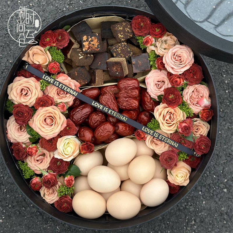 中秋节水果礼盒花束花盒早生贵子礼盒鸡蛋面条盒圆形月饼鲜花花盒